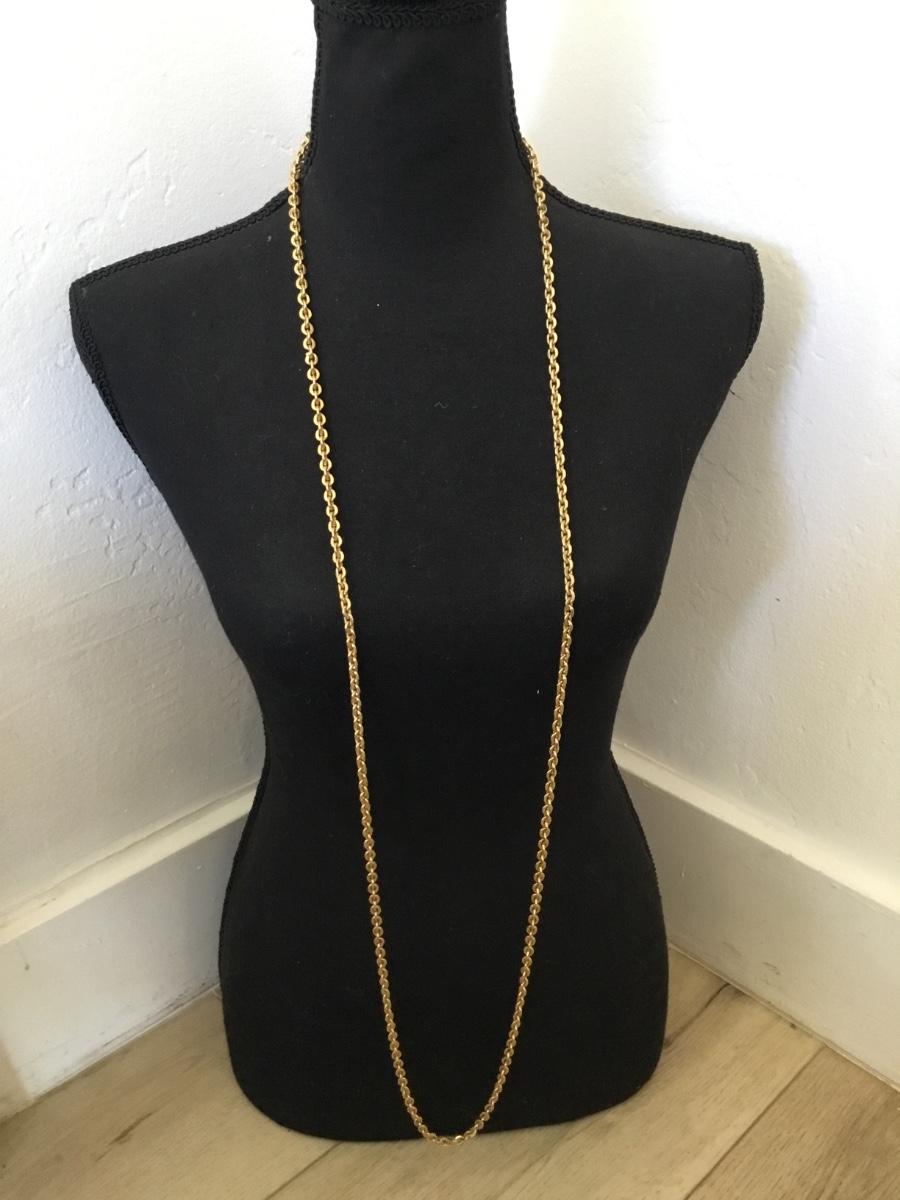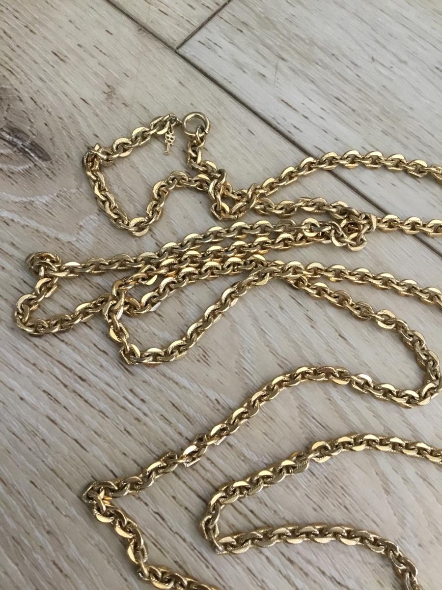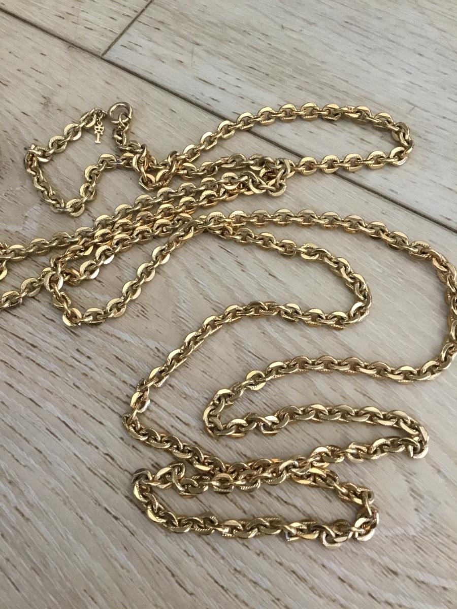 Vintage crown Trifari very nice textured, gold tone, chain necklace, long chain necklace