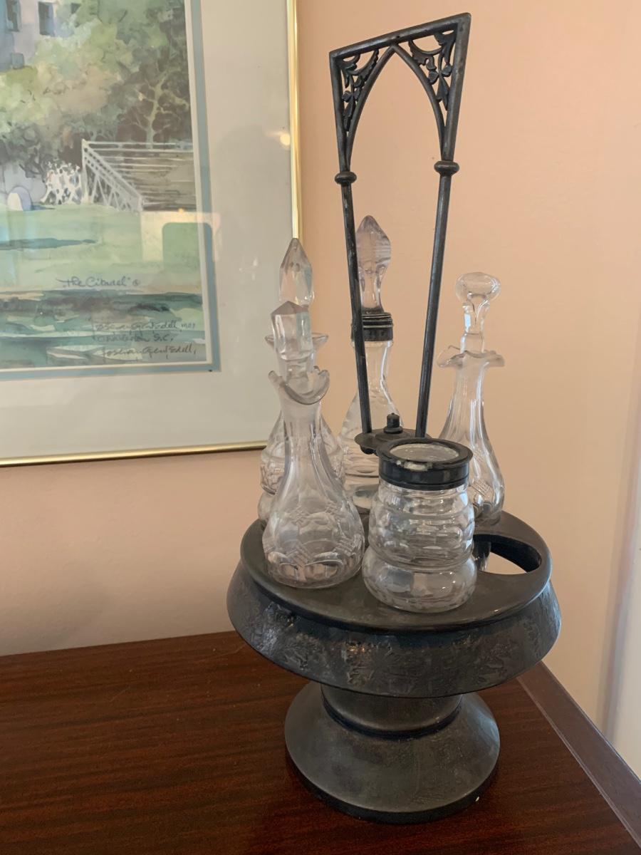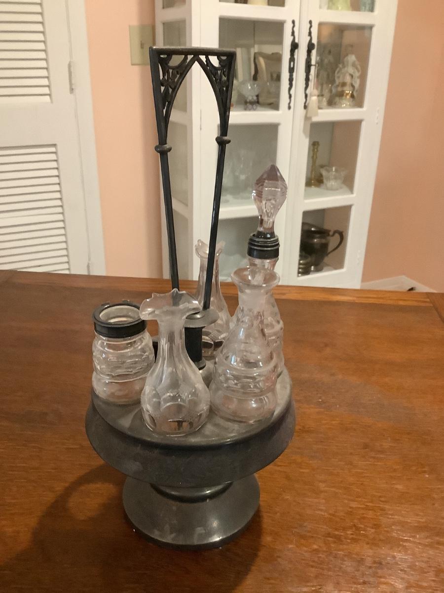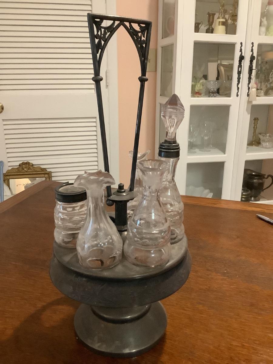 Vintage Cruet Set /Condiment Carousel silver plate 5 piece