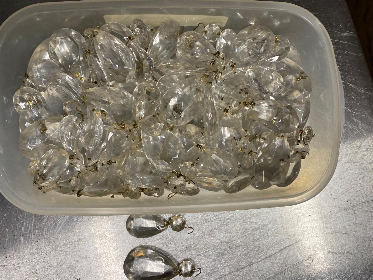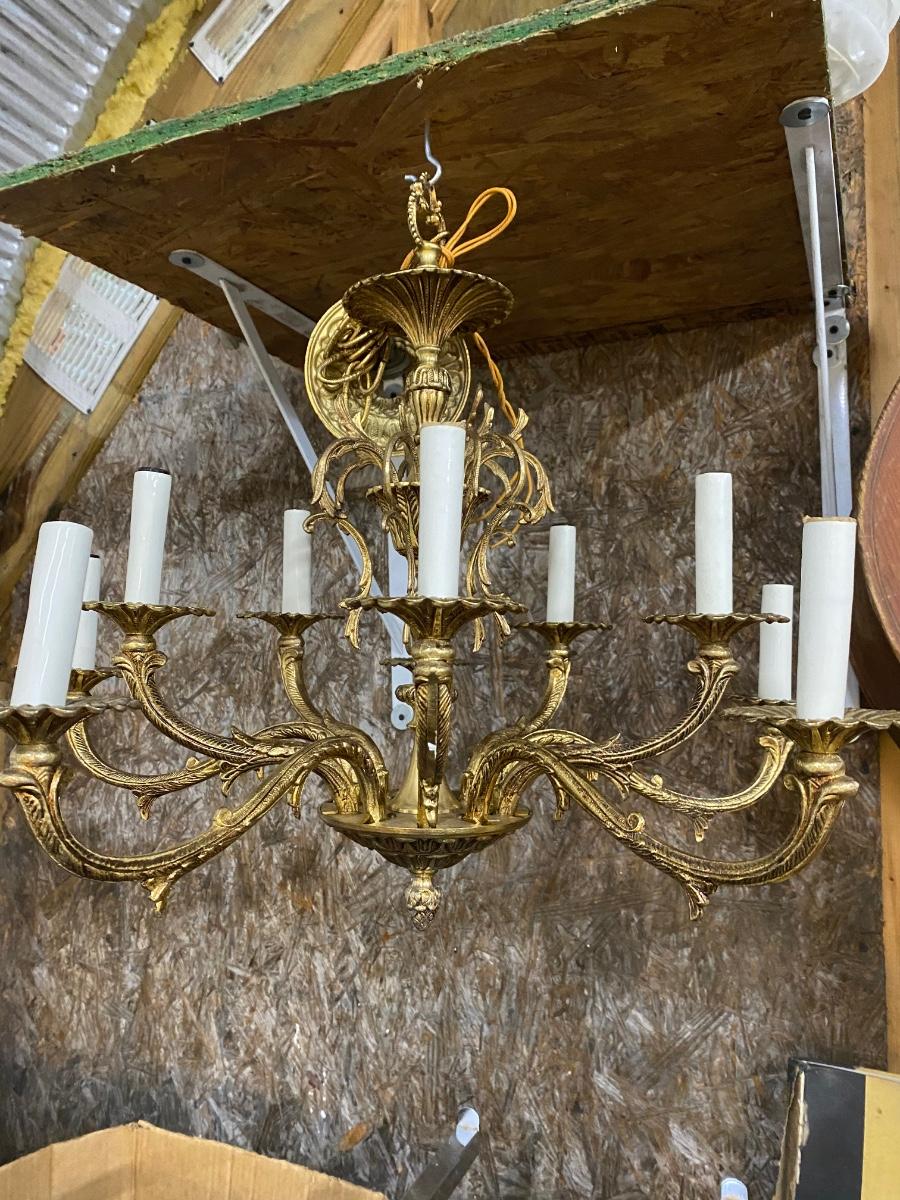 Vintage crystal & brass chandelier. We have the crystals but they are unattached. Approx 24” dia x 19” H. In good condition