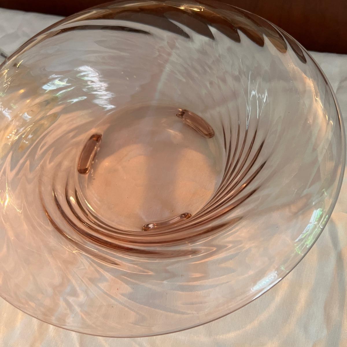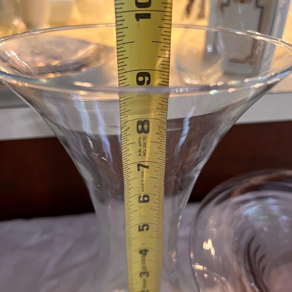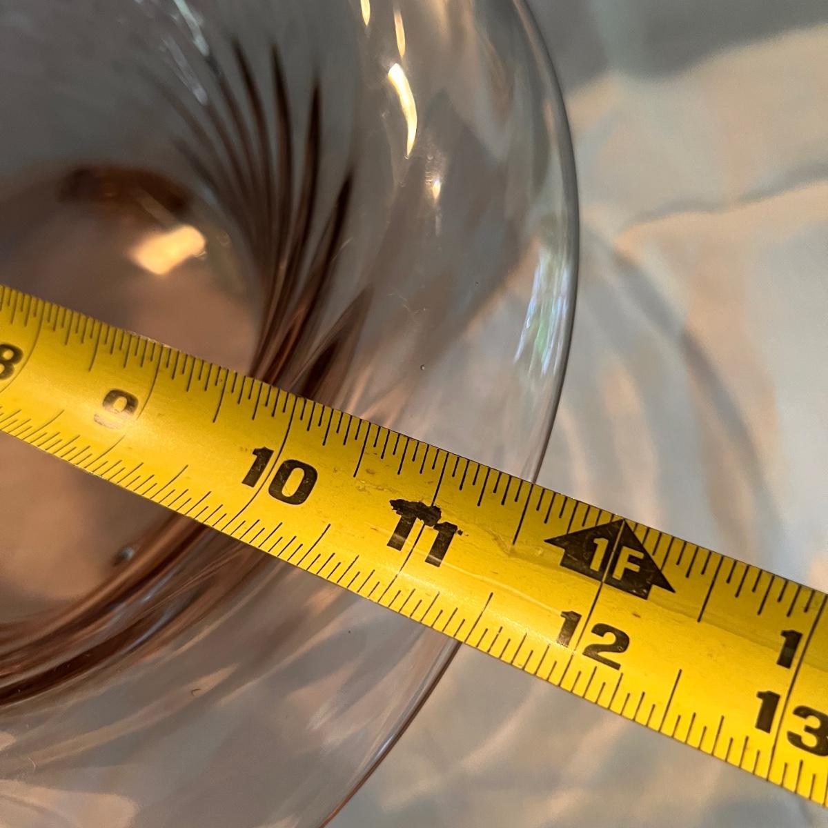 1920's Art Deco Fostoria Glass Orchid Spiral Optic Footed Bowl. Lenox clock, crystal vase and Christmas plate. 2 blue and white Christmas plates are Pickard and Tuscan fine bone China. Hourglass shaped vase.