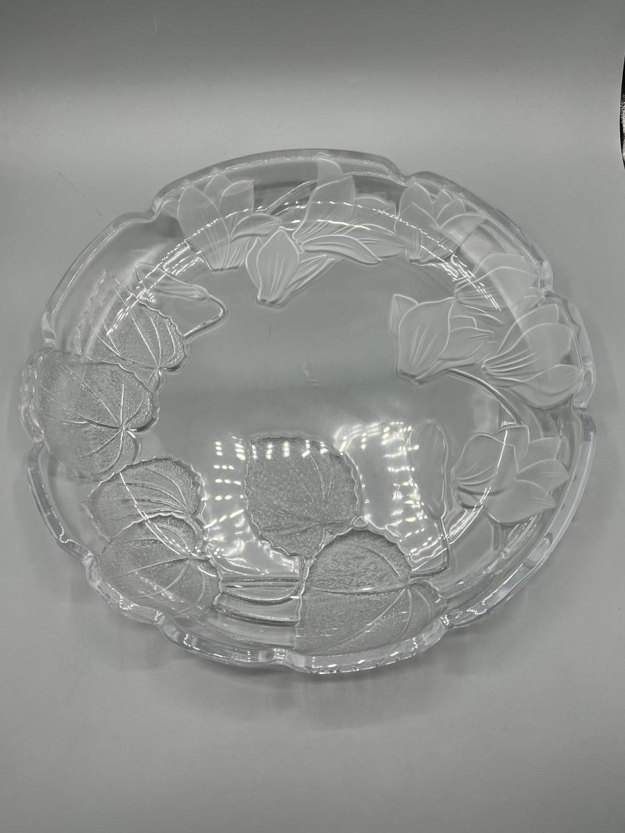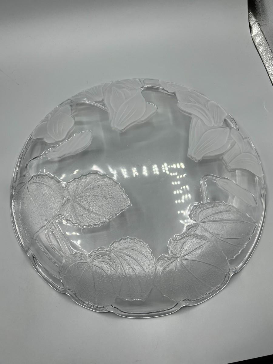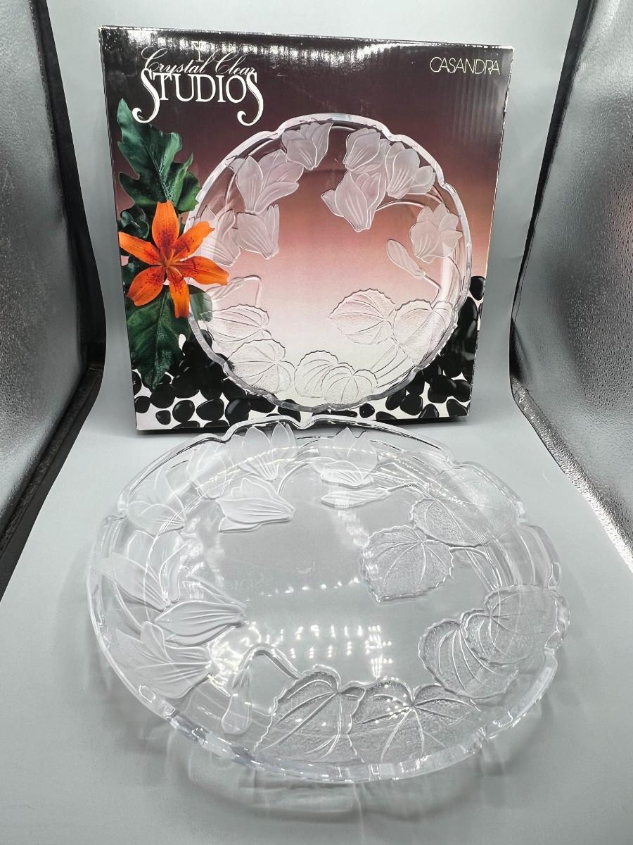 Vintage Crystal Clear Studios Casandra Glass Serving Platter Dish with Original Box, there is no significant damage to the plate and is in good useable condition. Check pictures for more details and for sizing.