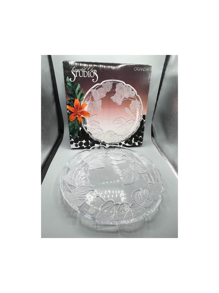 Vintage Crystal Clear Studios Casandra Glass Serving Platter Dish with Original Box, there is no significant damage to the plate and is in good useable condition. Check pictures for more details and for sizing.