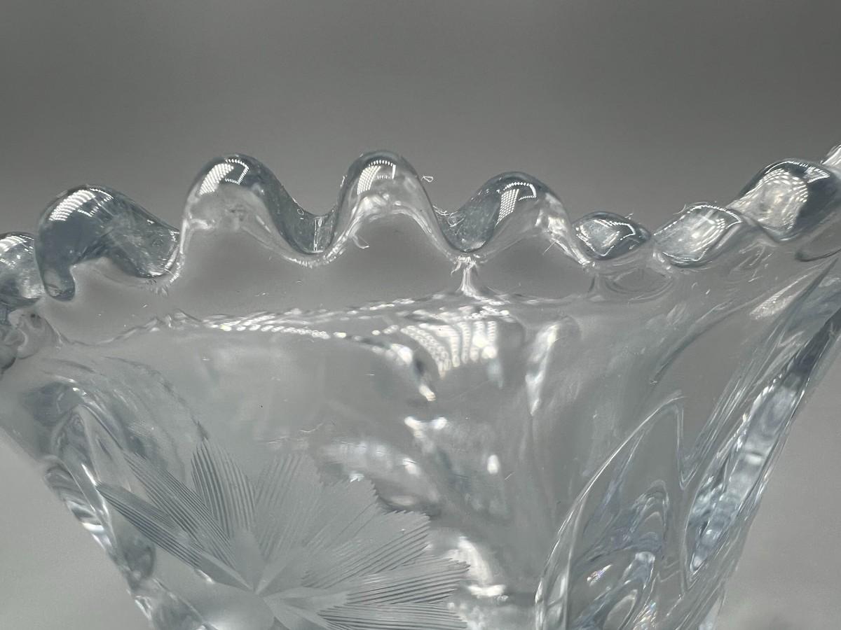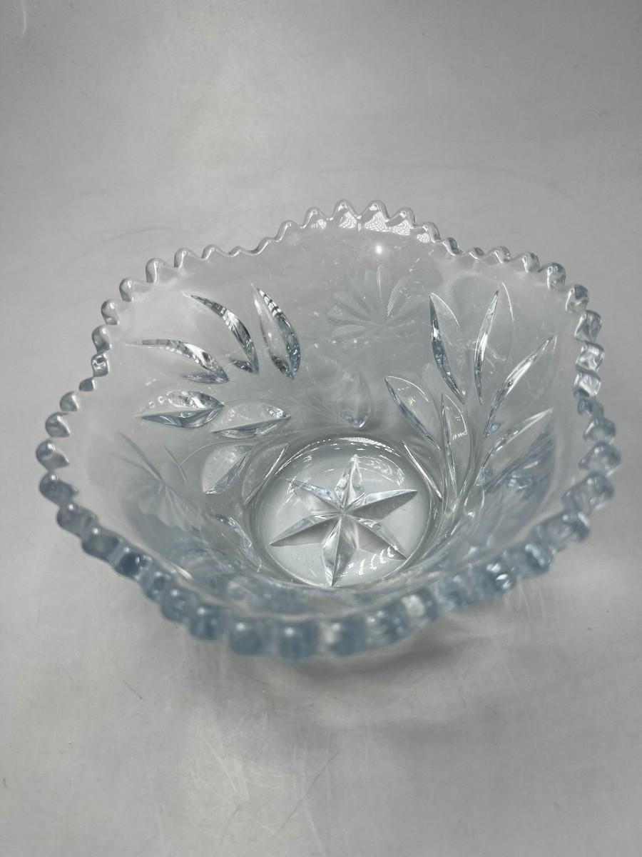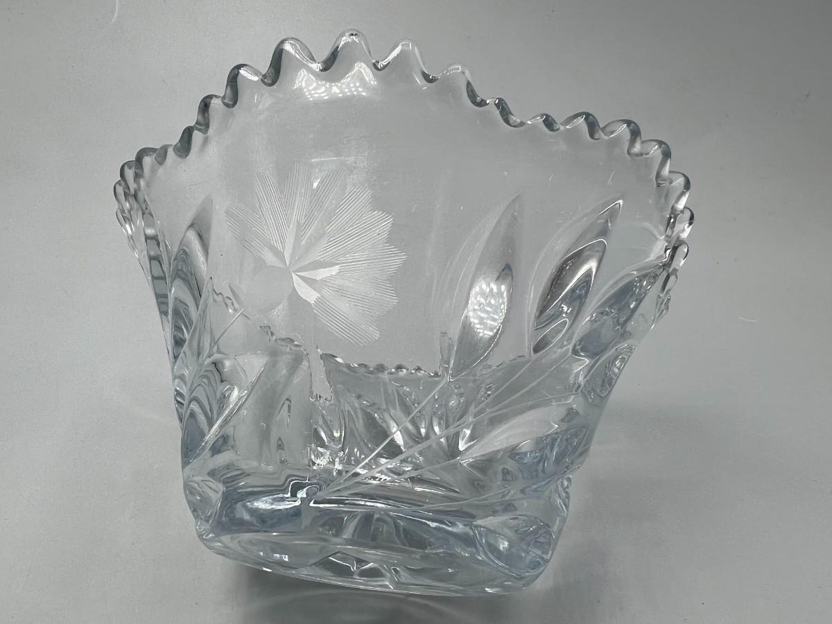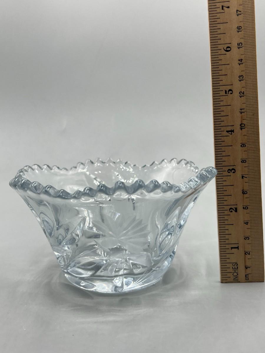 Vintage Crystal Cut Glass Sawtooth Edge Flower Design Candy Trinket Bowl Dish