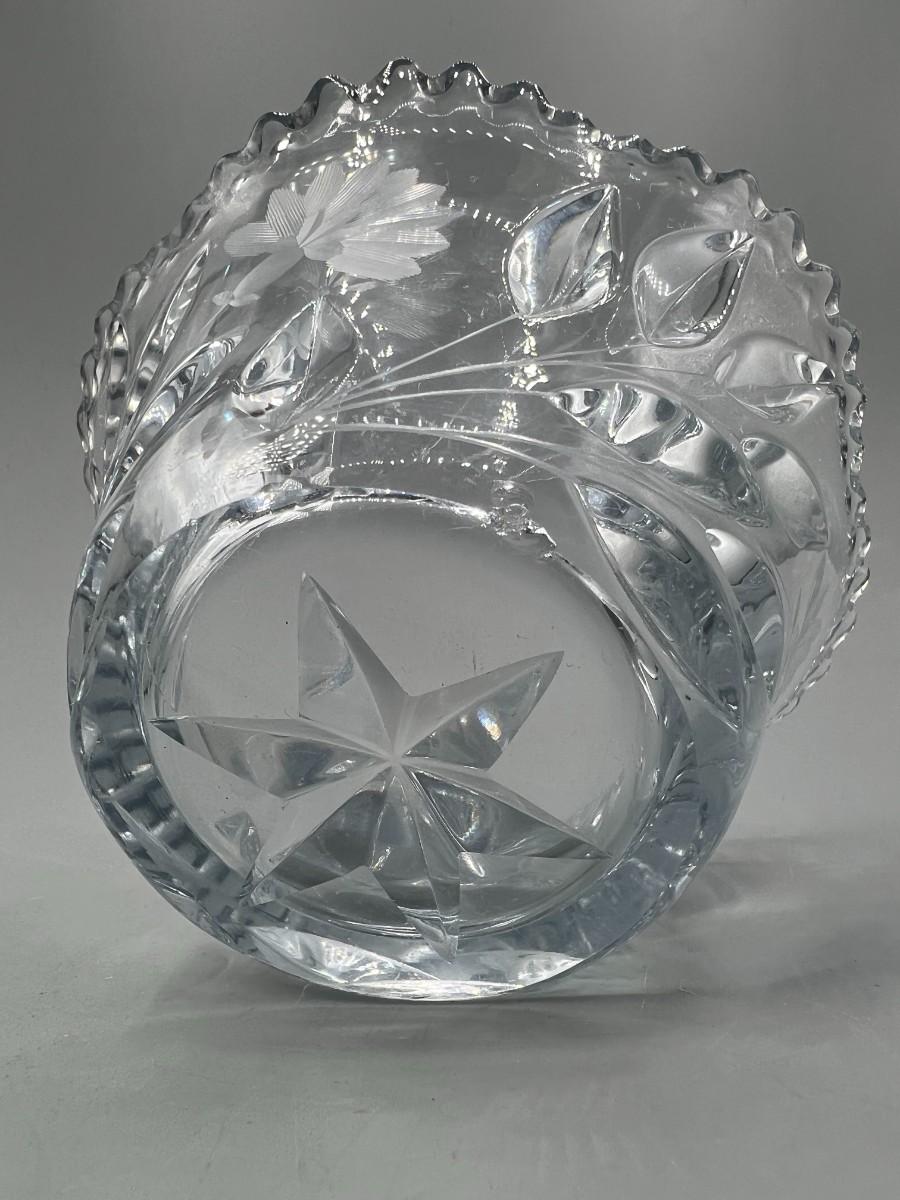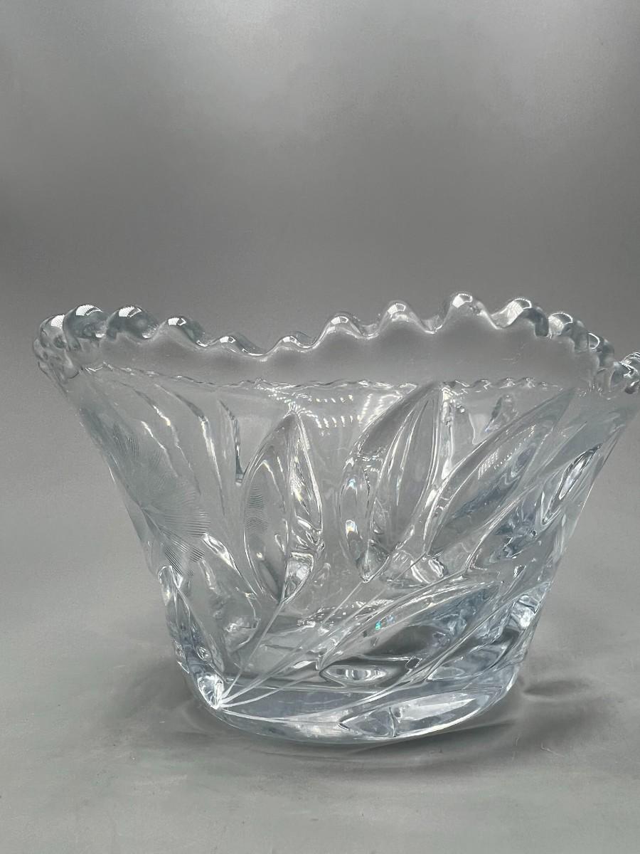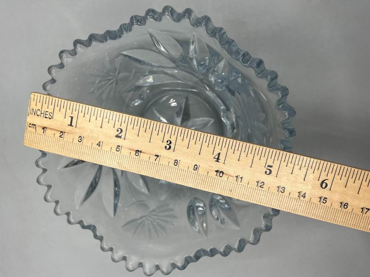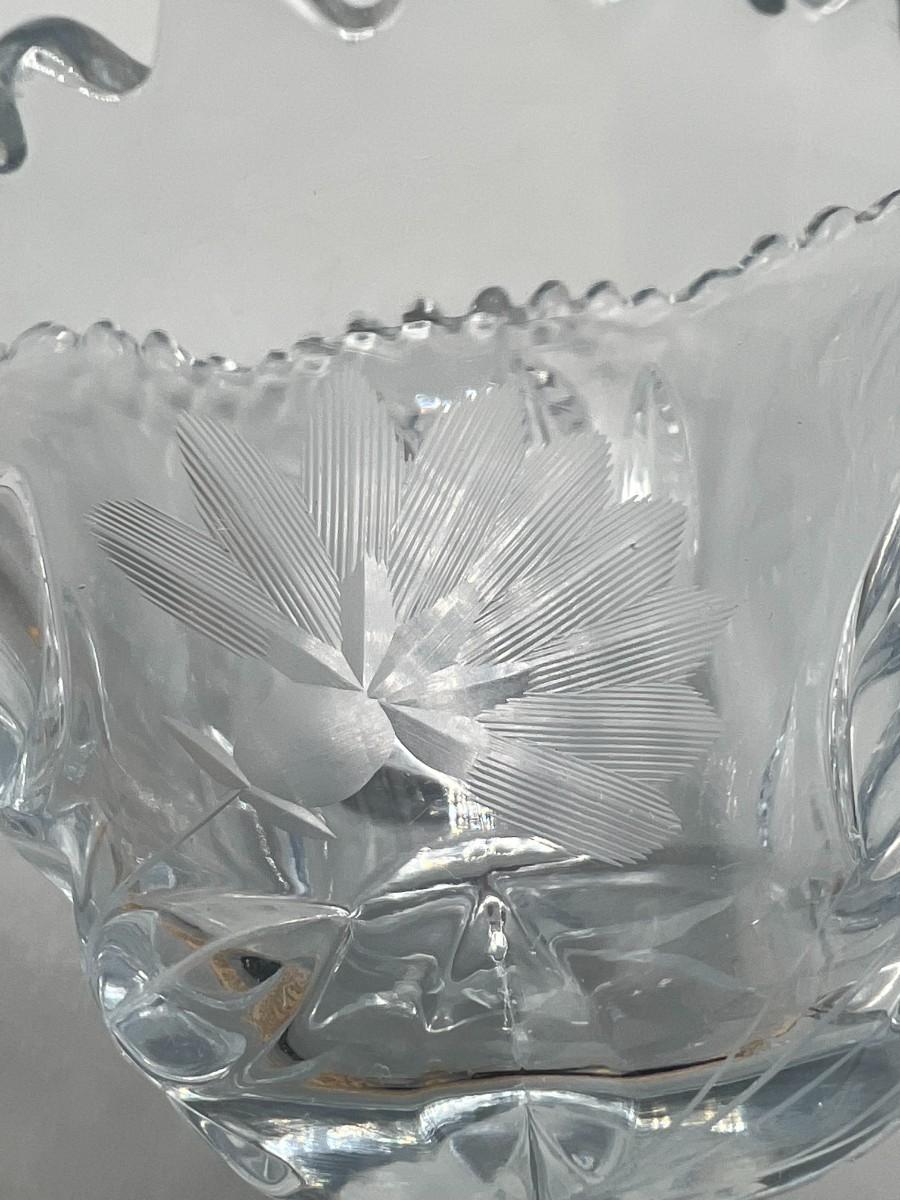 Vintage Crystal Cut Glass Sawtooth Edge Flower Design Candy Trinket Bowl Dish
