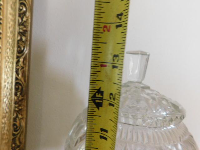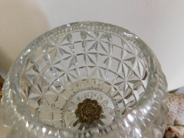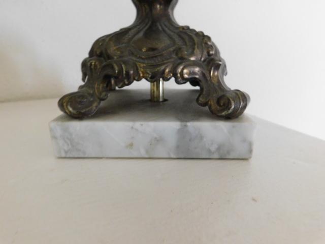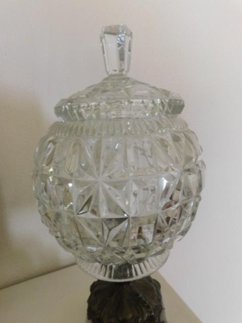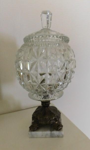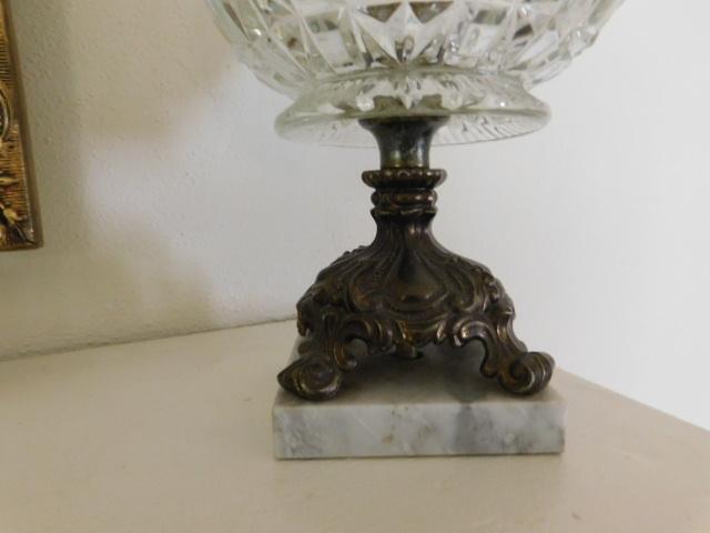 Vintage Crystal Dish with Pot Metal Post and Foot on Marble Base 13"