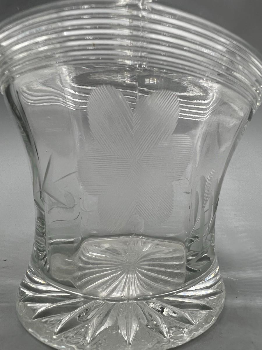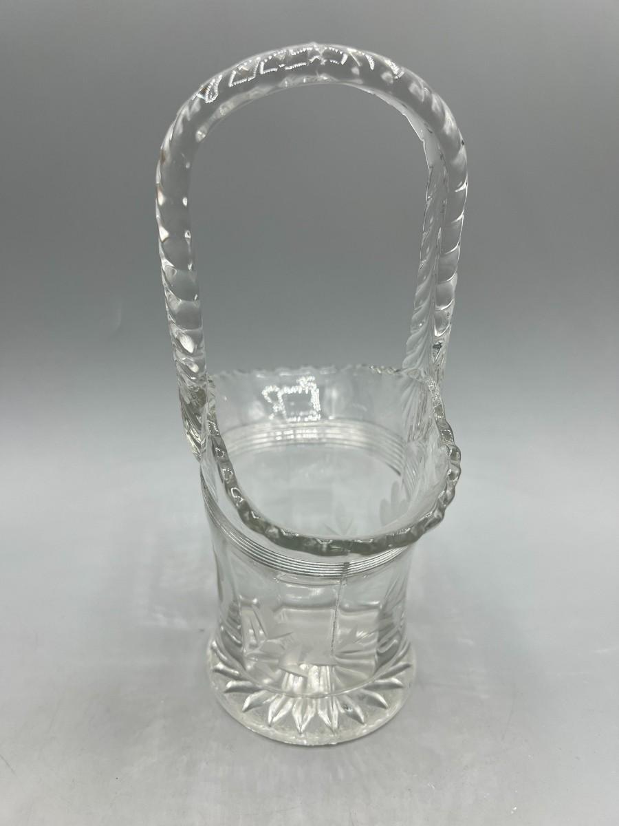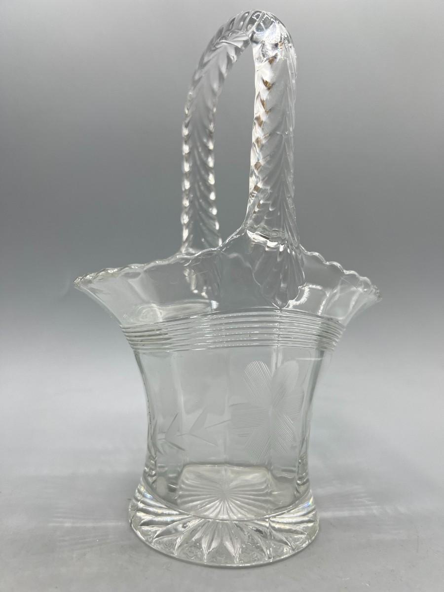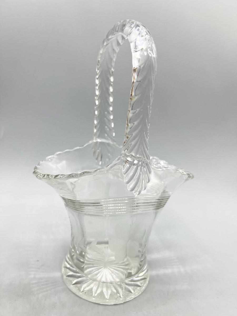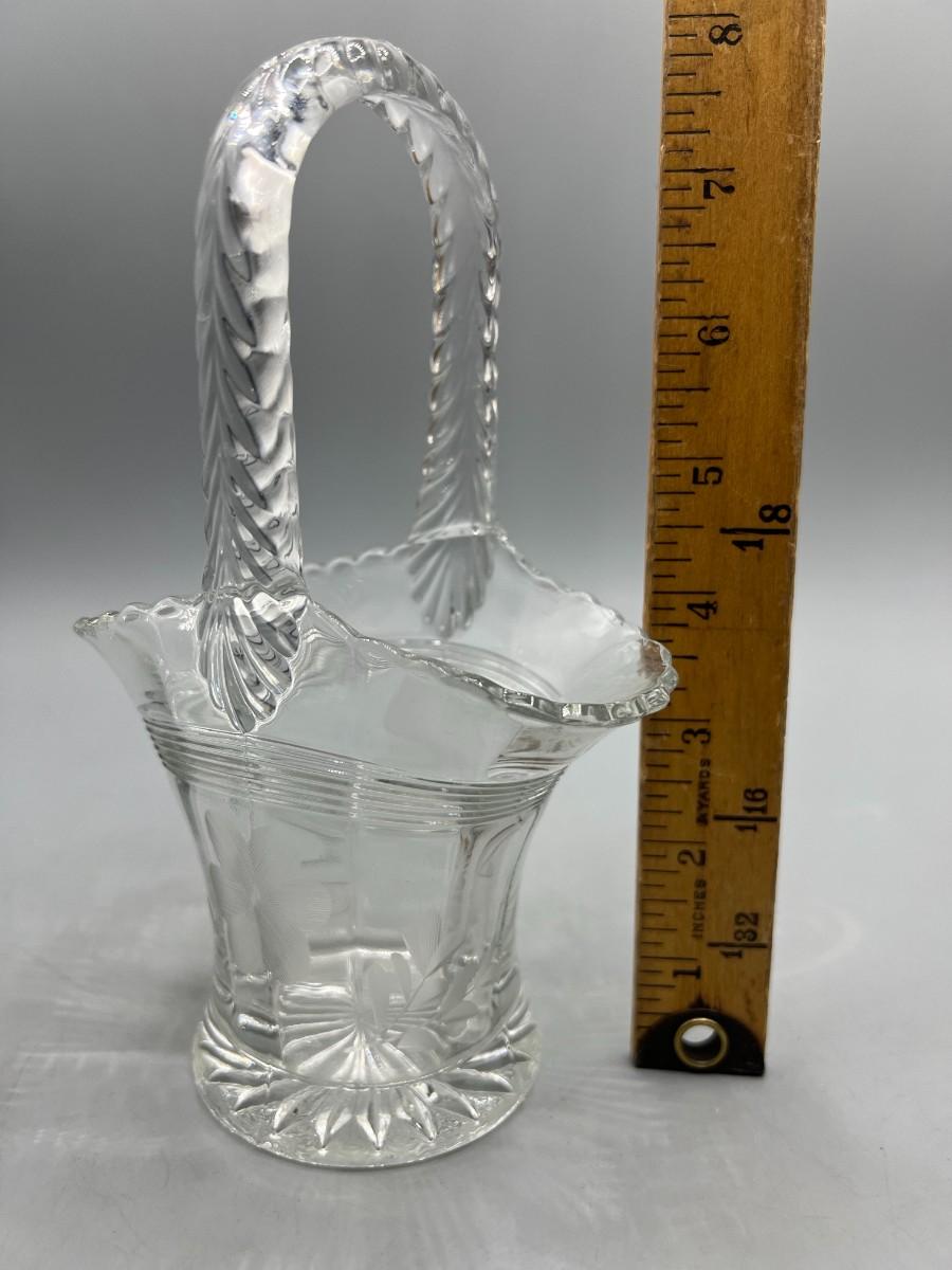 Vintage Crystal Glass Etched Flower Pattern Basket
