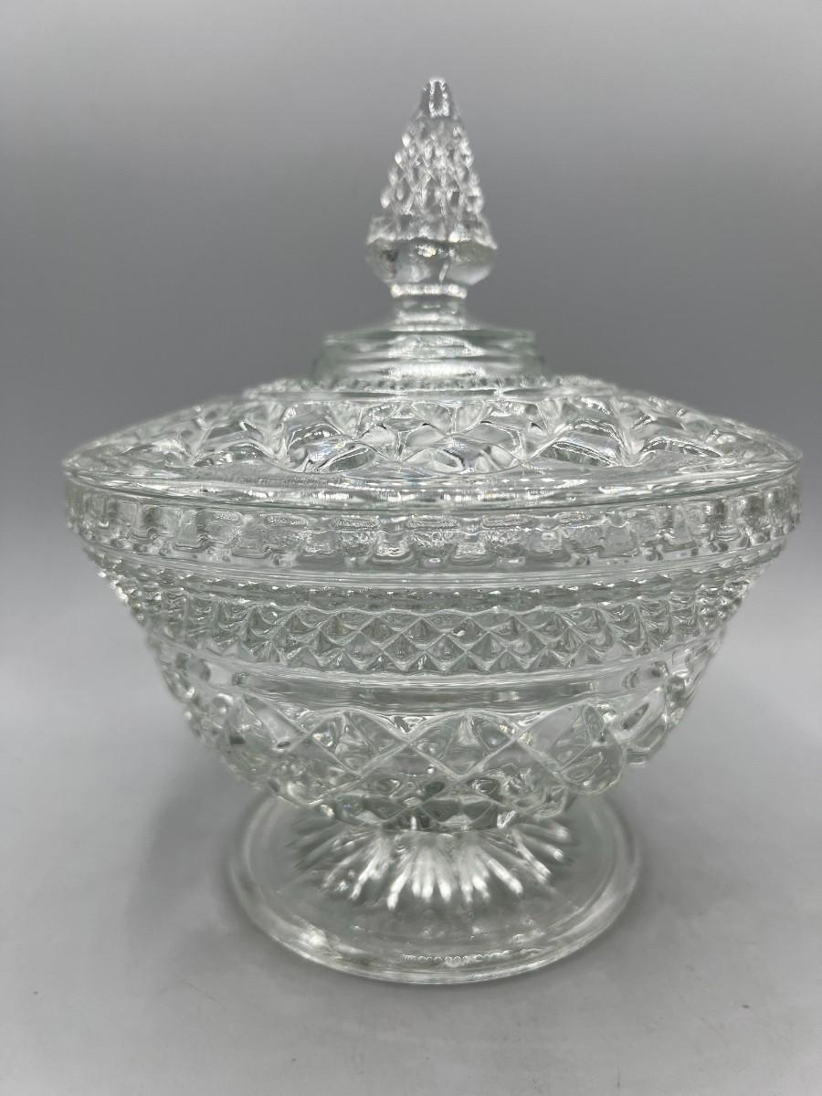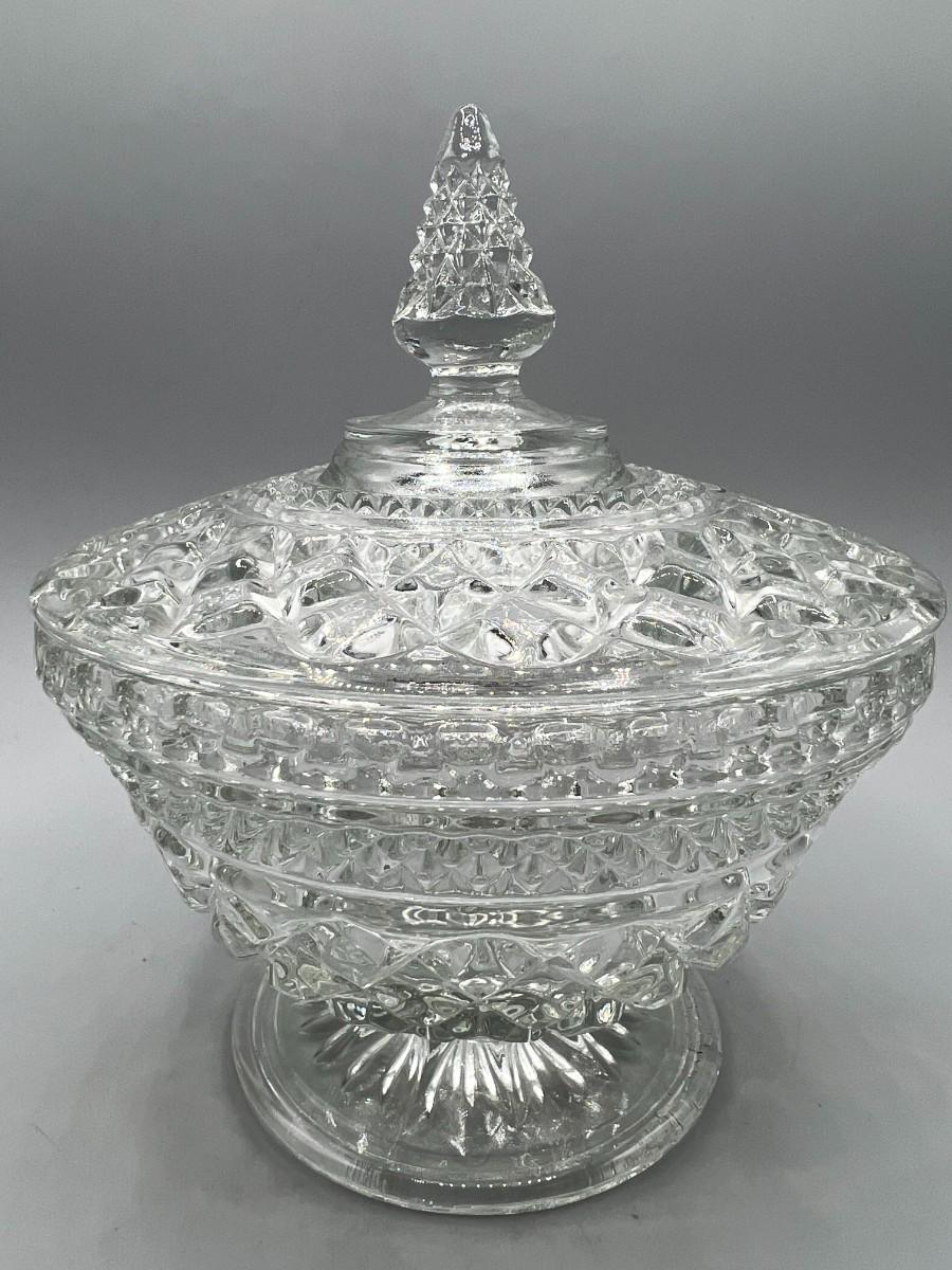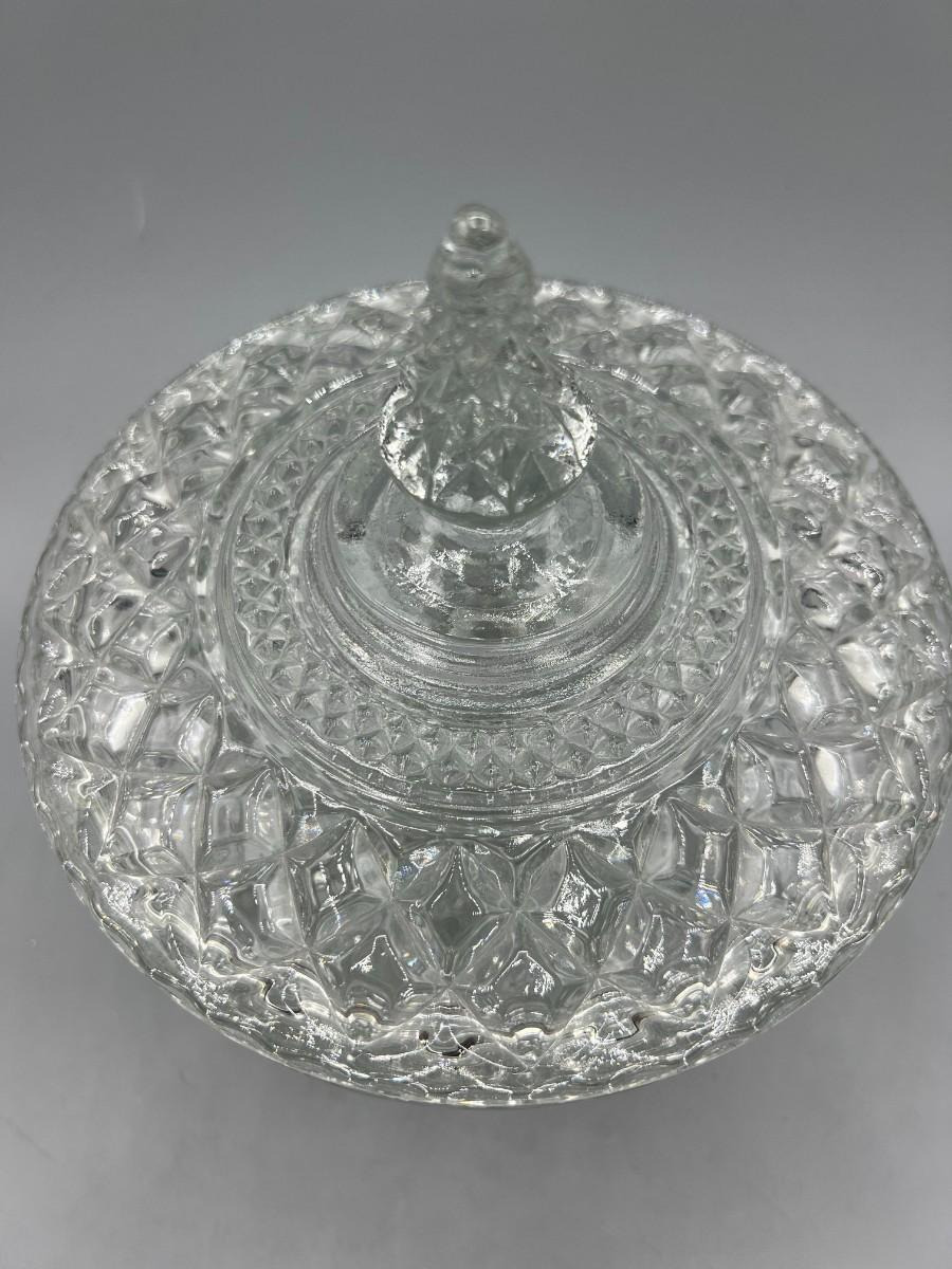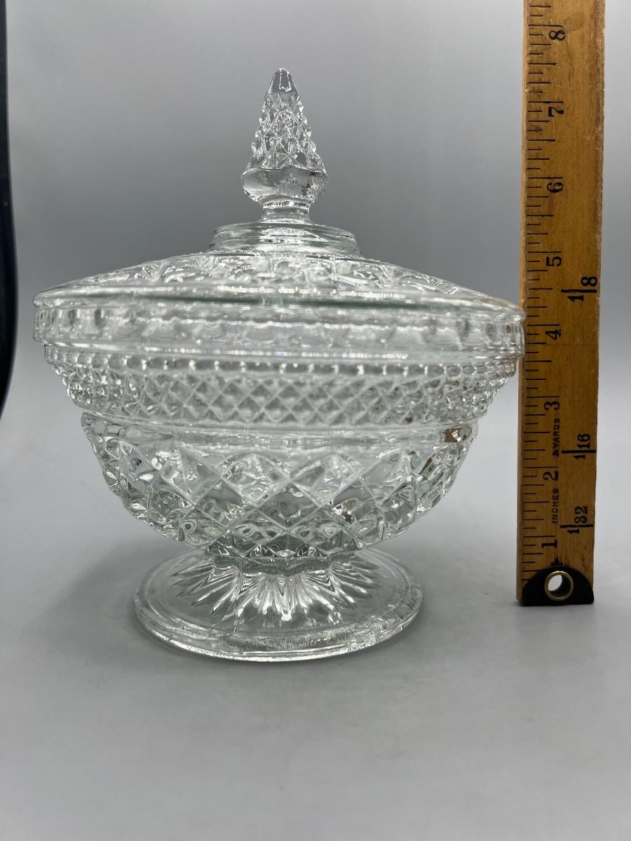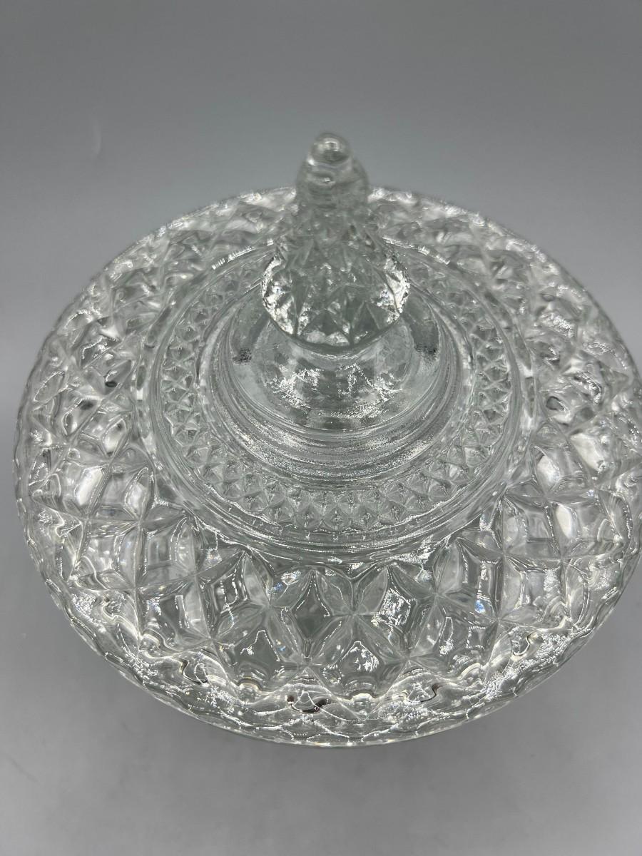 Vintage Crystal Glass Lidded Pedestal Candy Dish