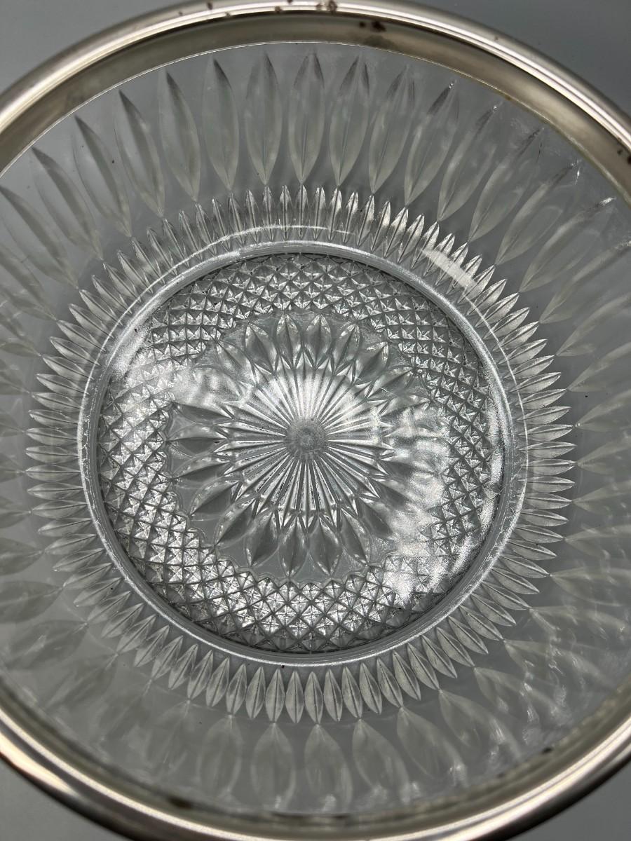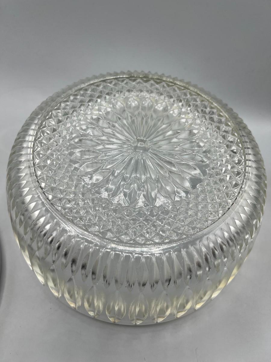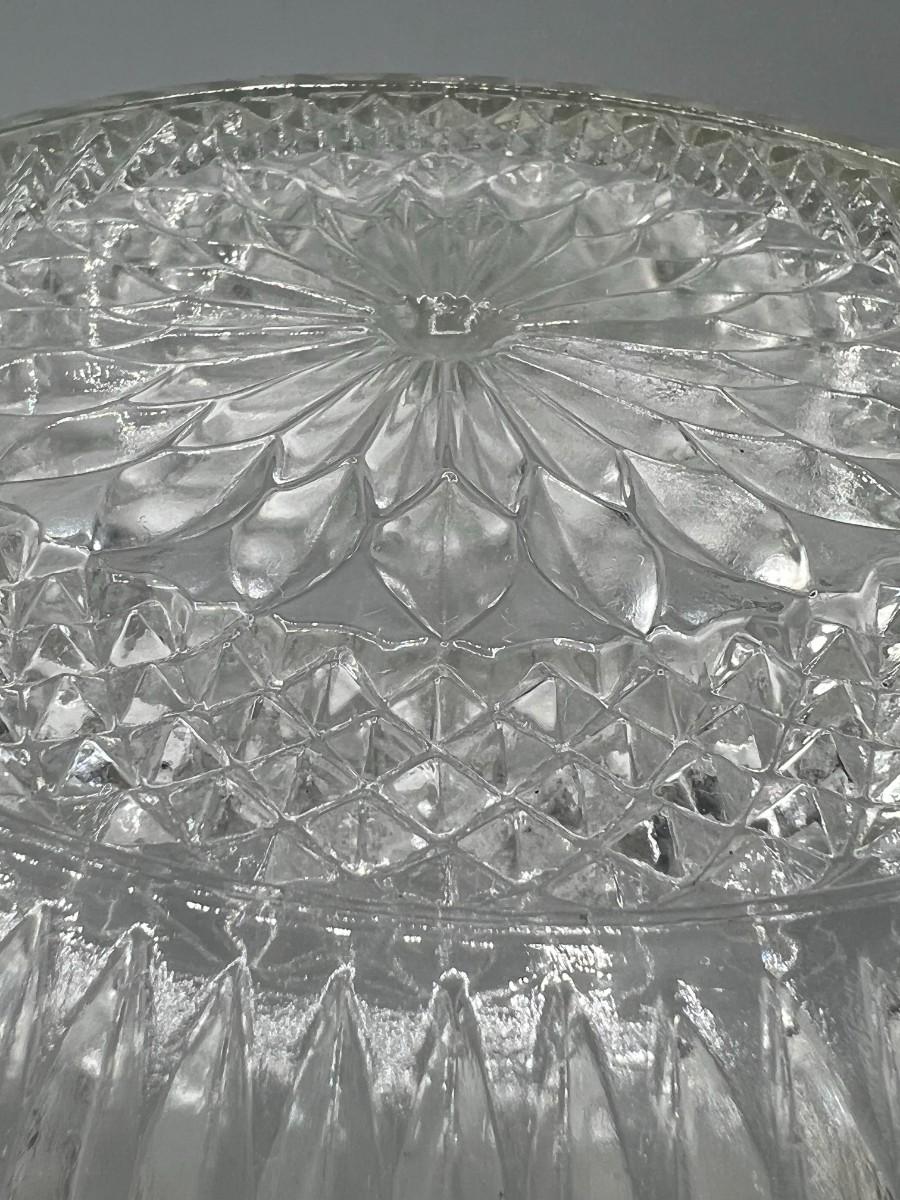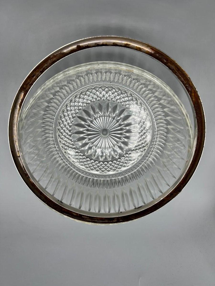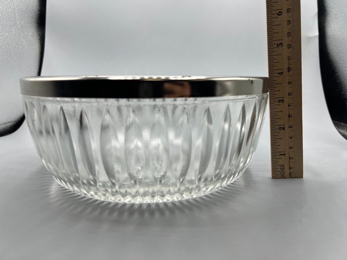 Vintage Crystal Glass Metal Trim MCM Diamond Cut Pattern Fruit Bowl