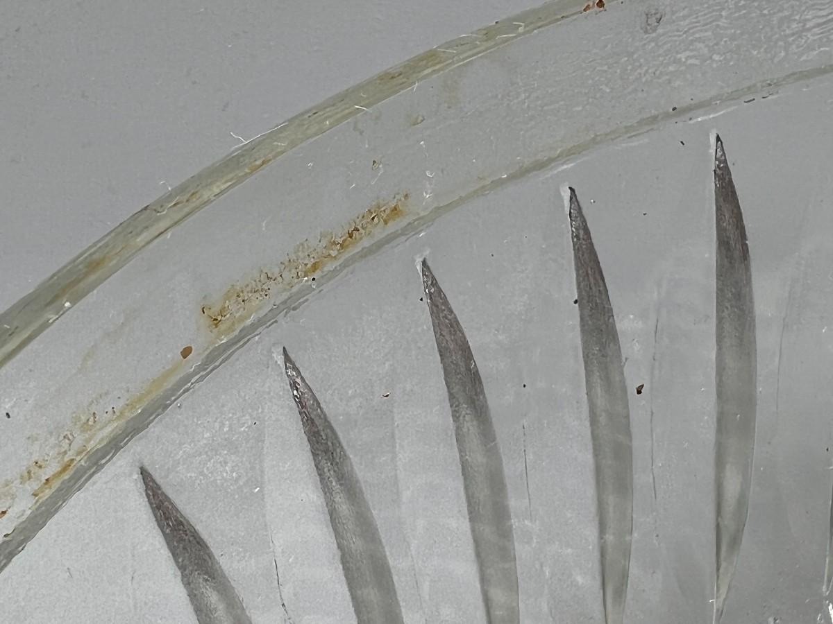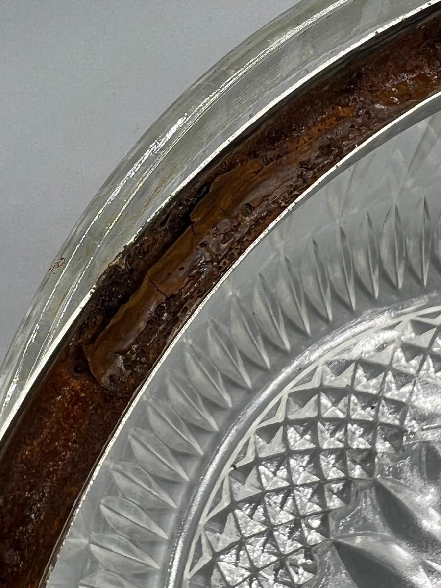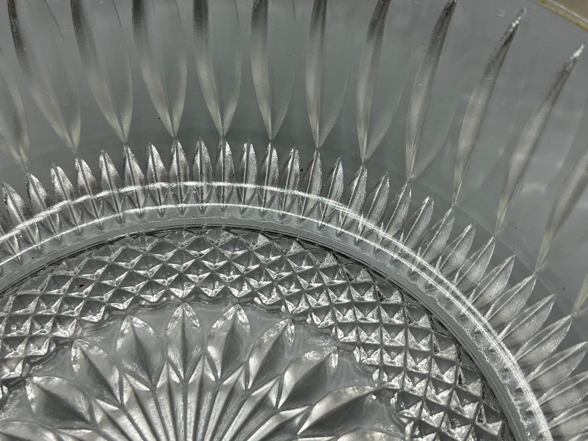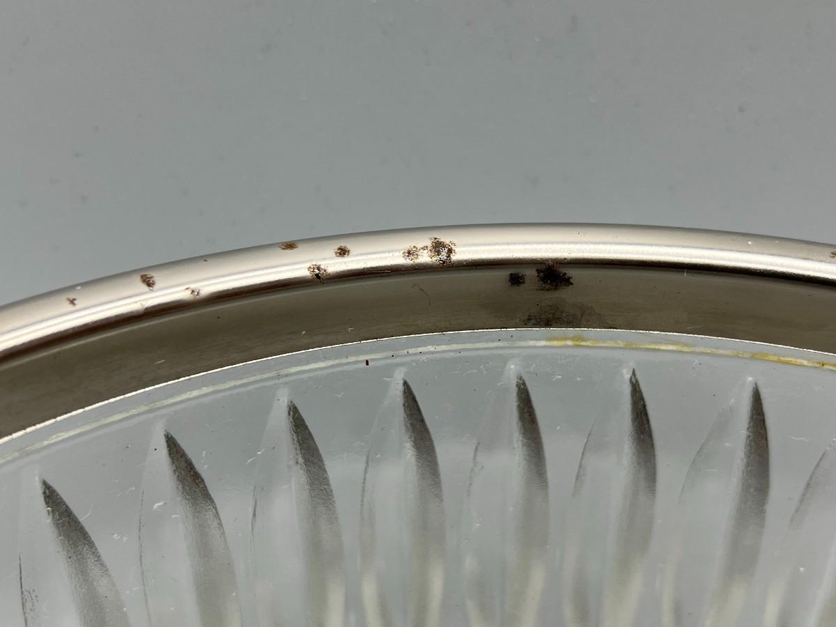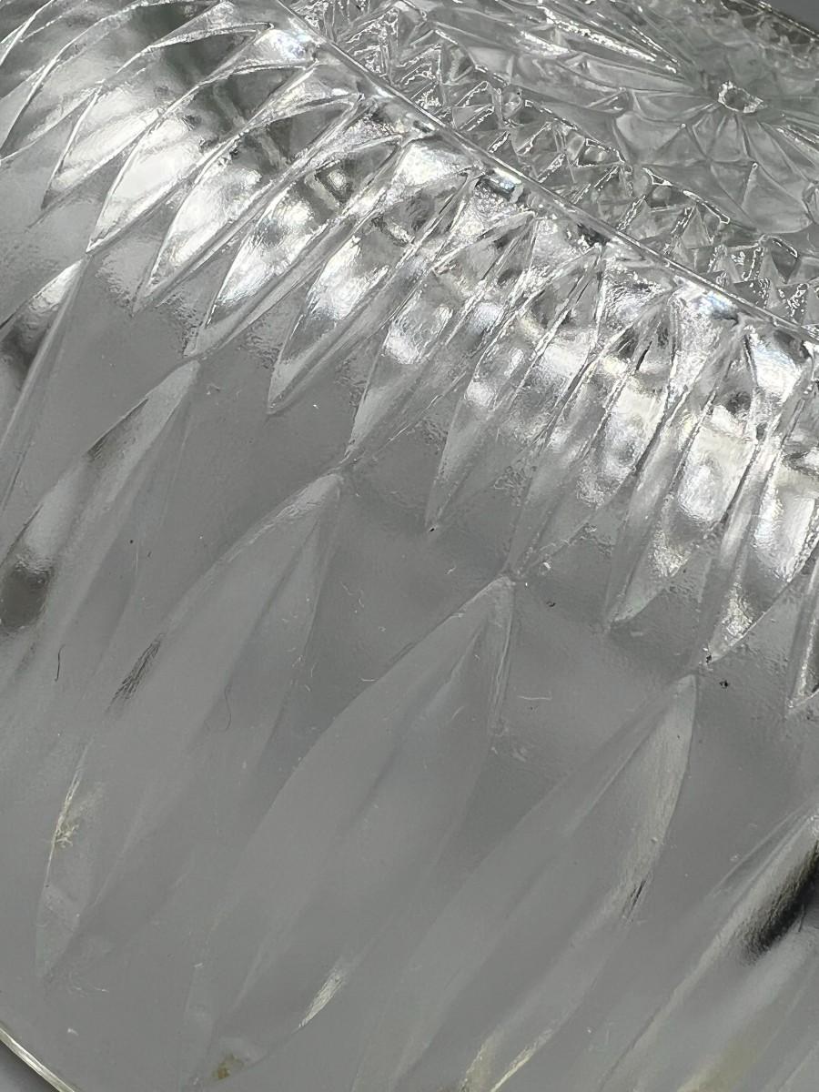 Vintage Crystal Glass Metal Trim MCM Diamond Cut Pattern Fruit Bowl