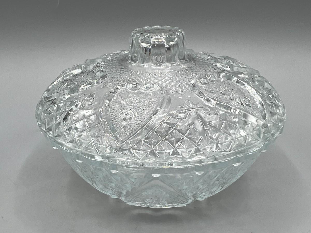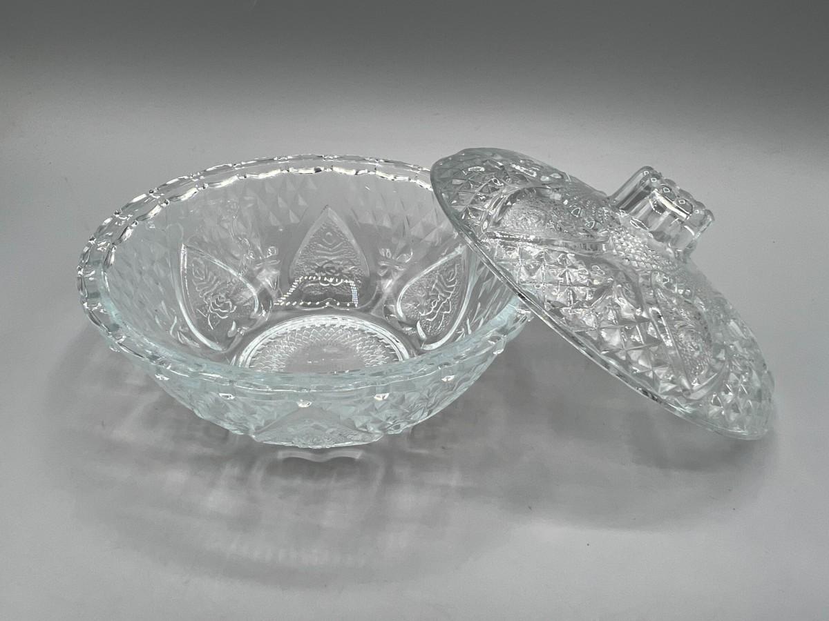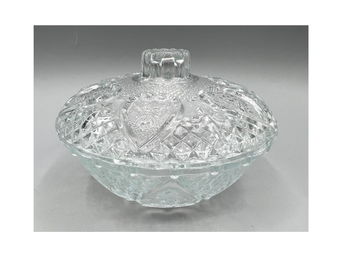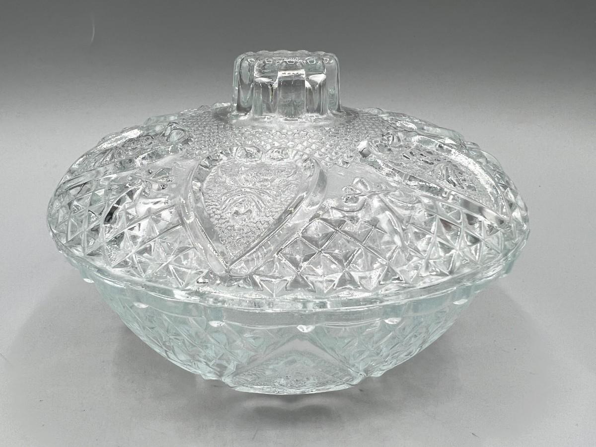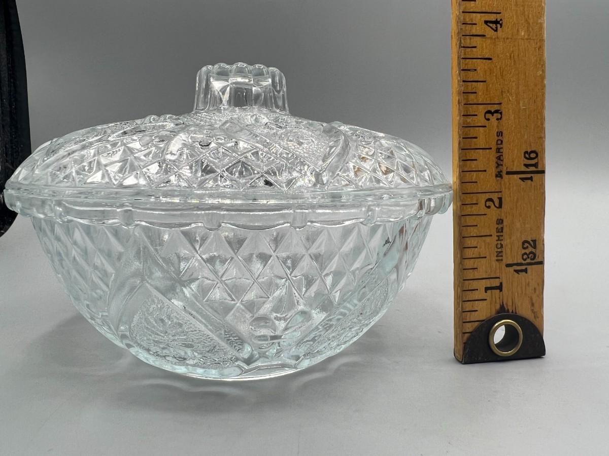 Vintage Depression Pressed Glass Patterned Trinket Candy Dish Bowl