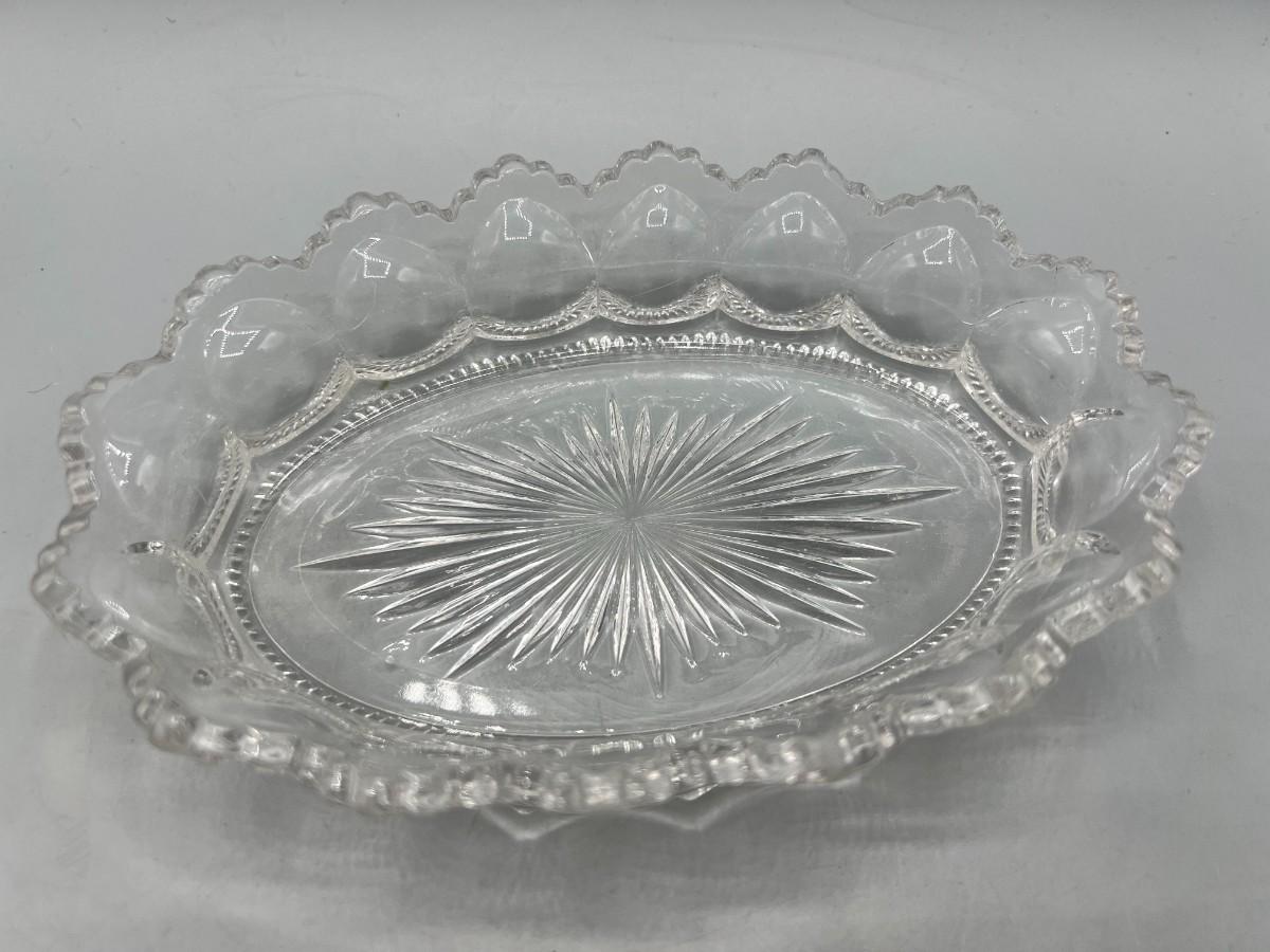 Vintage Crystal Glass Trinket Candy Dish Ruffled Edge Bowl Dish