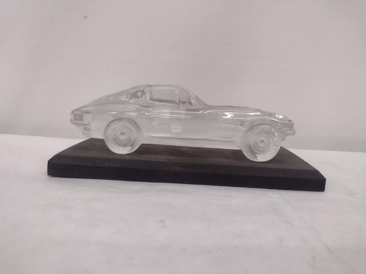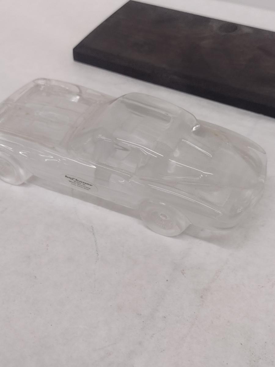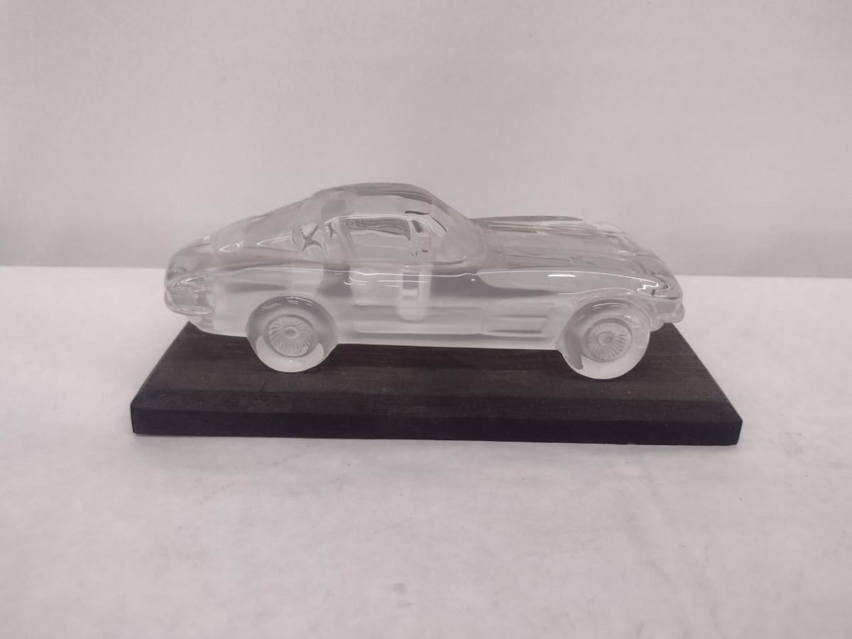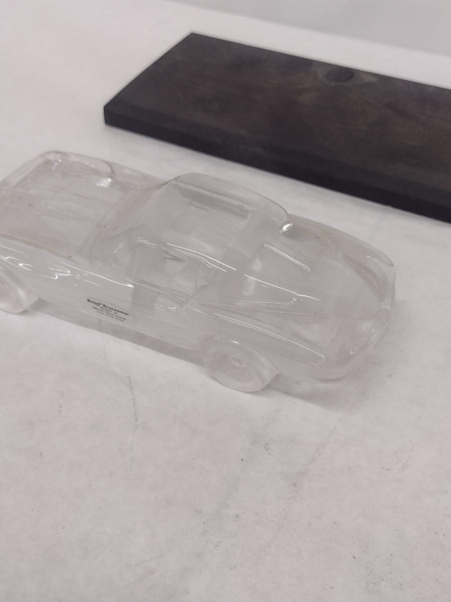 Vintage Crystal Hof Bauer Sports Car on Wooden Base (#46)