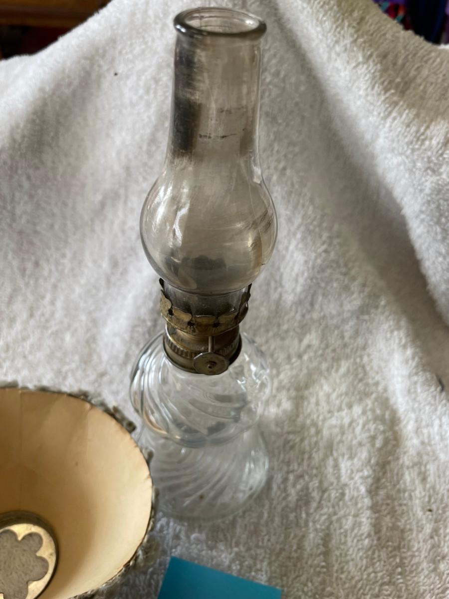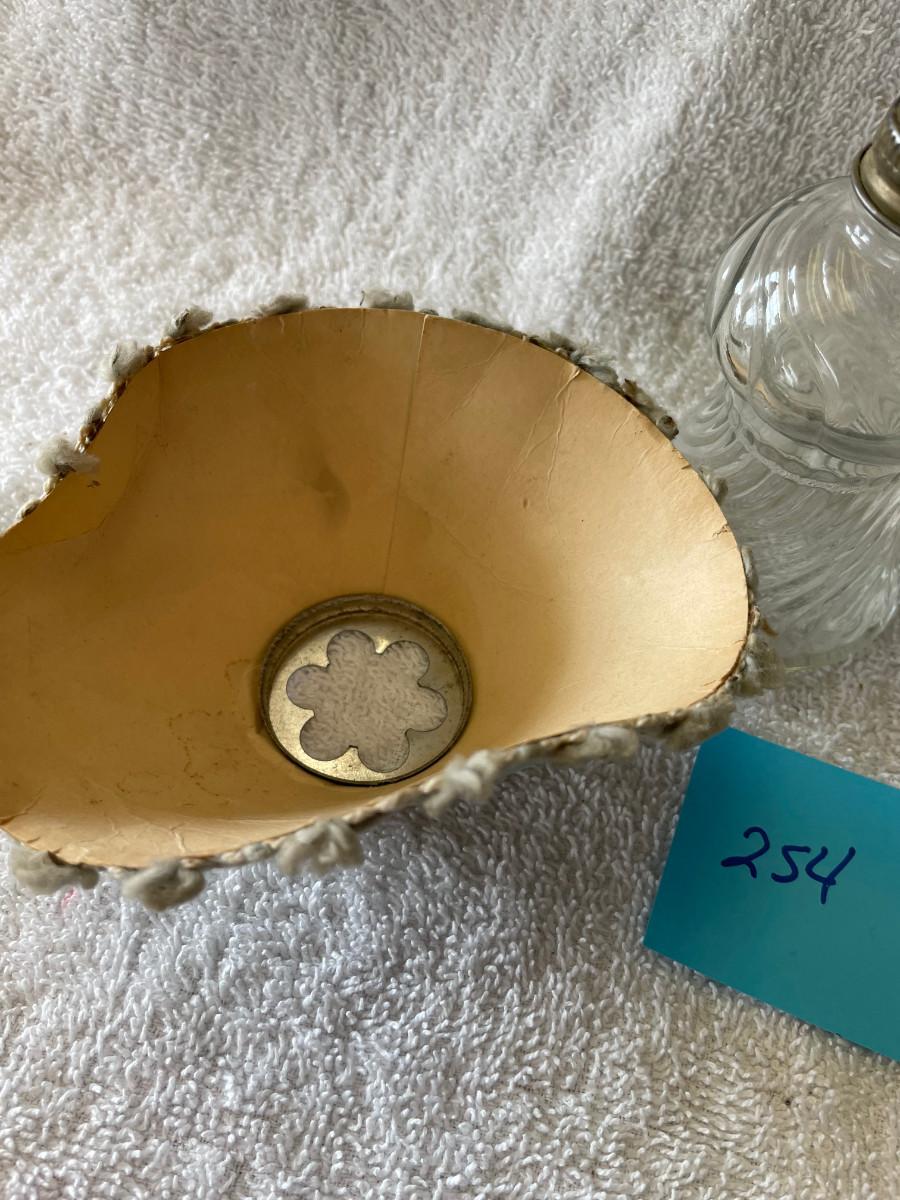 Shade is a little mis-shaped. Piece is good otherwise, very old.