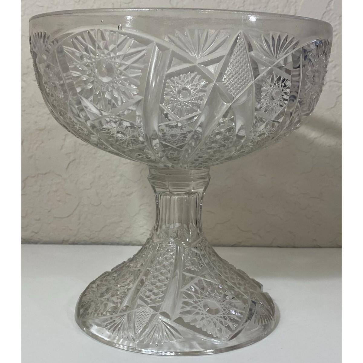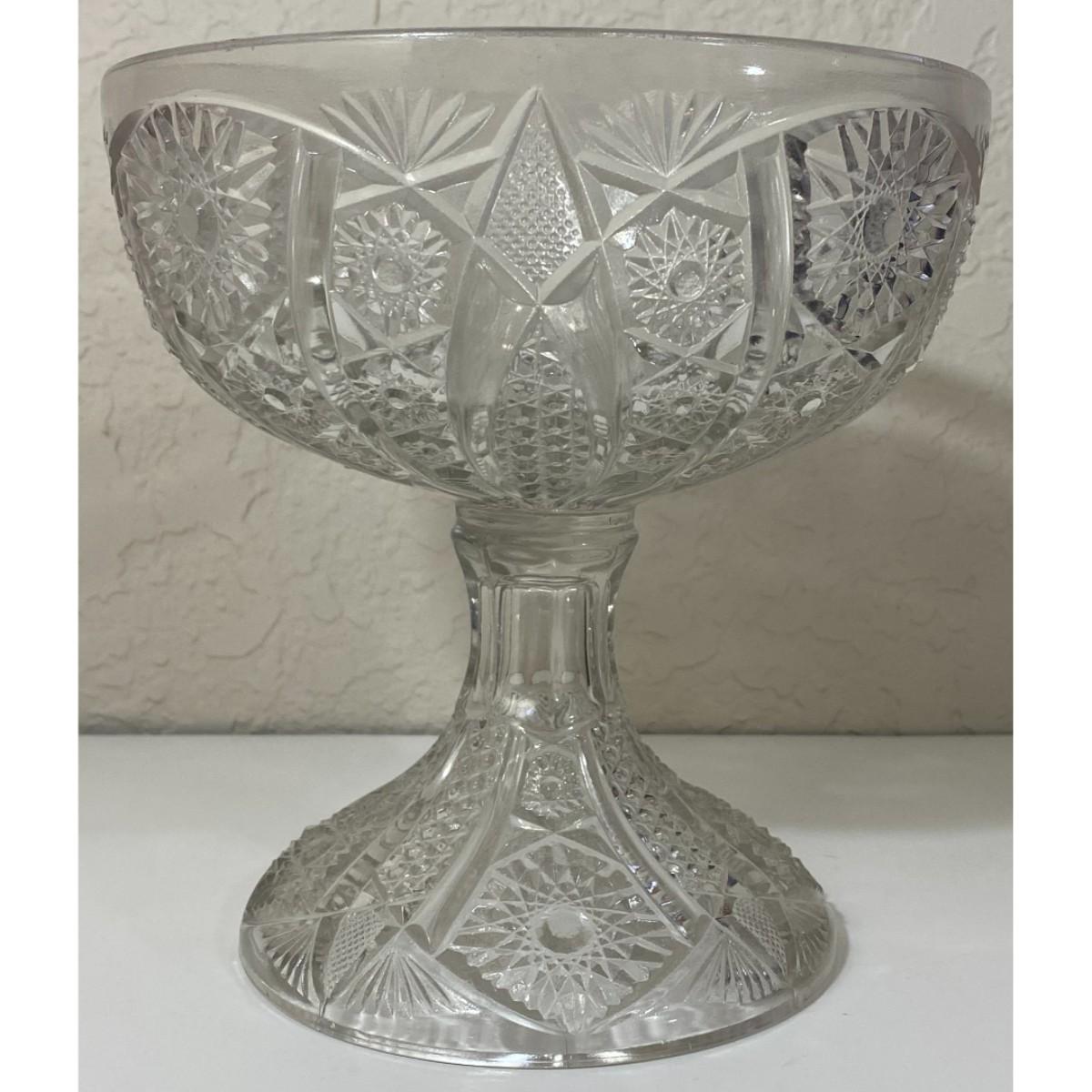 You get one crystal dish that is in good condition with minor surface wear. It stands approximately 6.5" tall, has a 6 3/8" diameter at the rim, and a 4.75" diameter at the base. Please see all pictures. Thank you for looking. As a reminder, if this is a lot, we do not break up lots. Also, all items are prepacked, so each item is sent individually. Any item that qualifies for media mail and weighs over one pound will be shipped via media mail. Otherwise, the item will be shipped USPS ground advantage, or UPS ground. Shipping for this item is $12.00. Items ship within two days after payment is received. Item SKU is OTH3042.