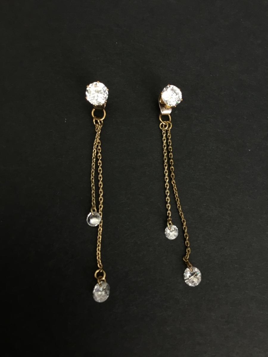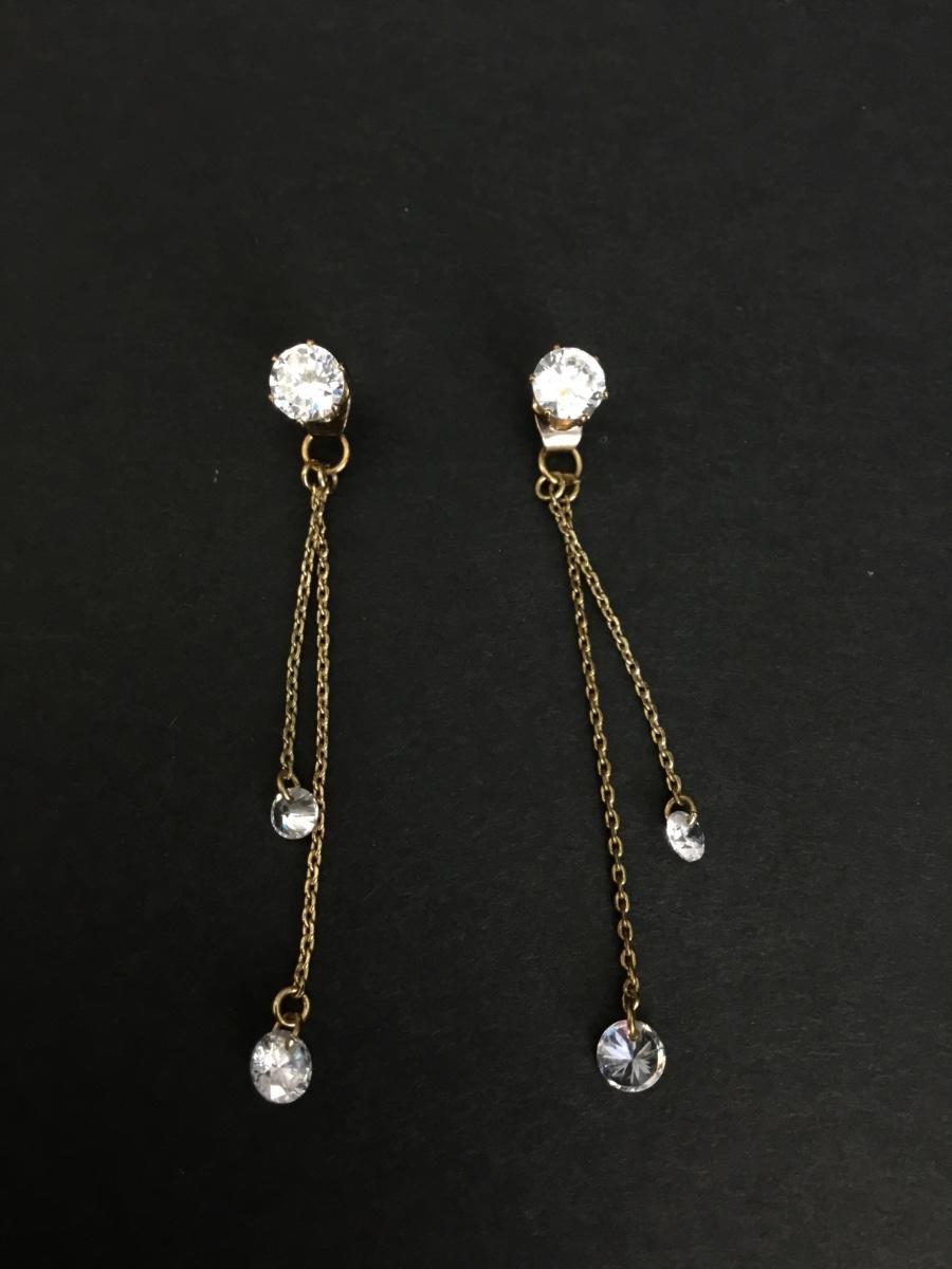 Vintage crystal rhinestone, gold tone, threader dangle earrings