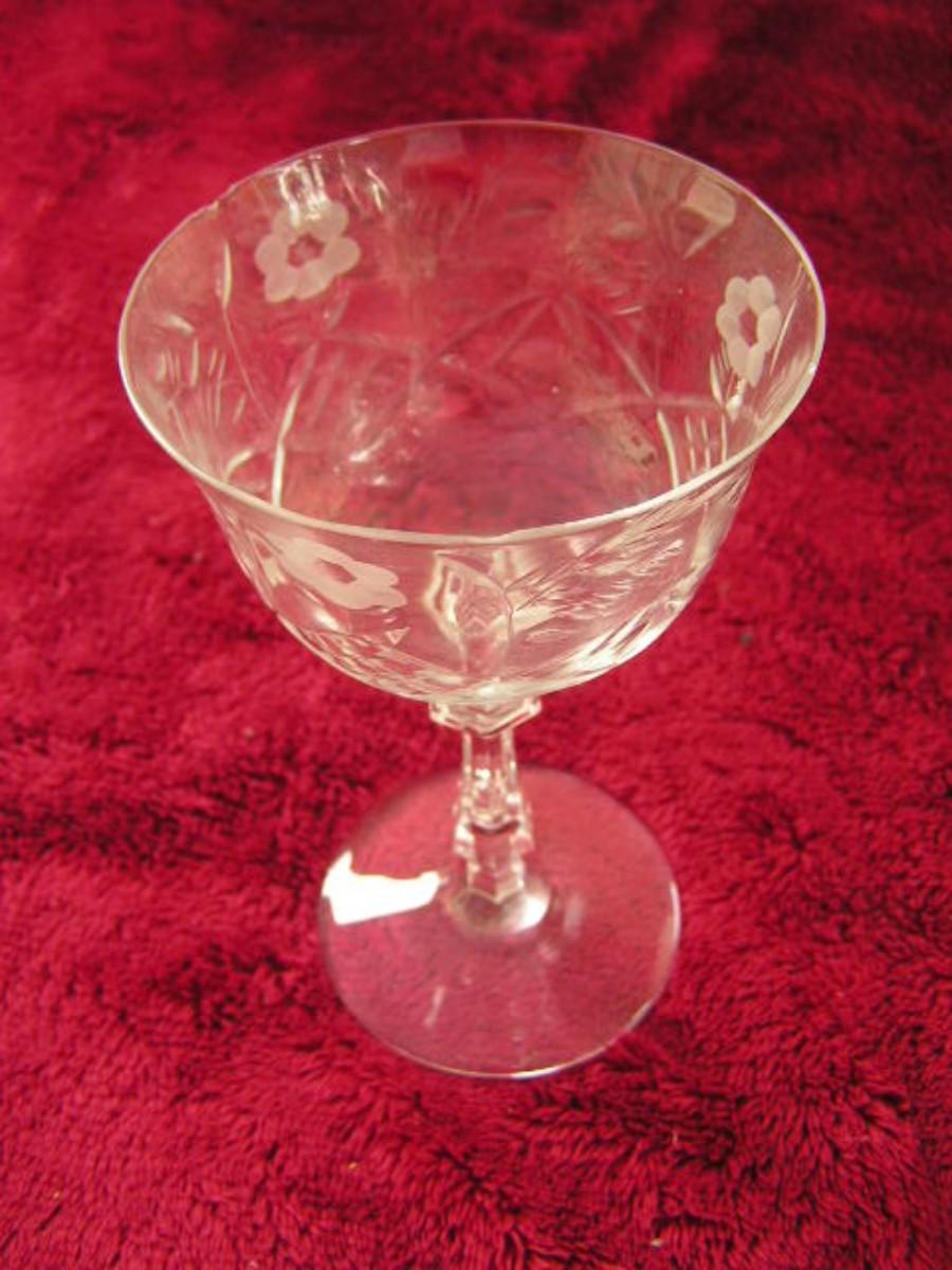 Vintage Crystal stemmed wine goblet. Combination pressed and cut.