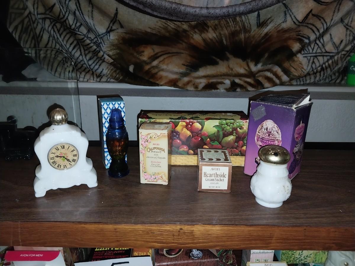 CALIFORNIA PERFUME-FRUIT SOAP-MANTLE CLOCK.....