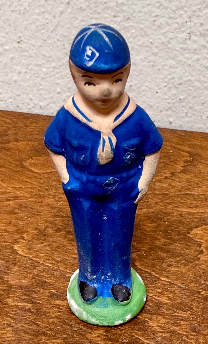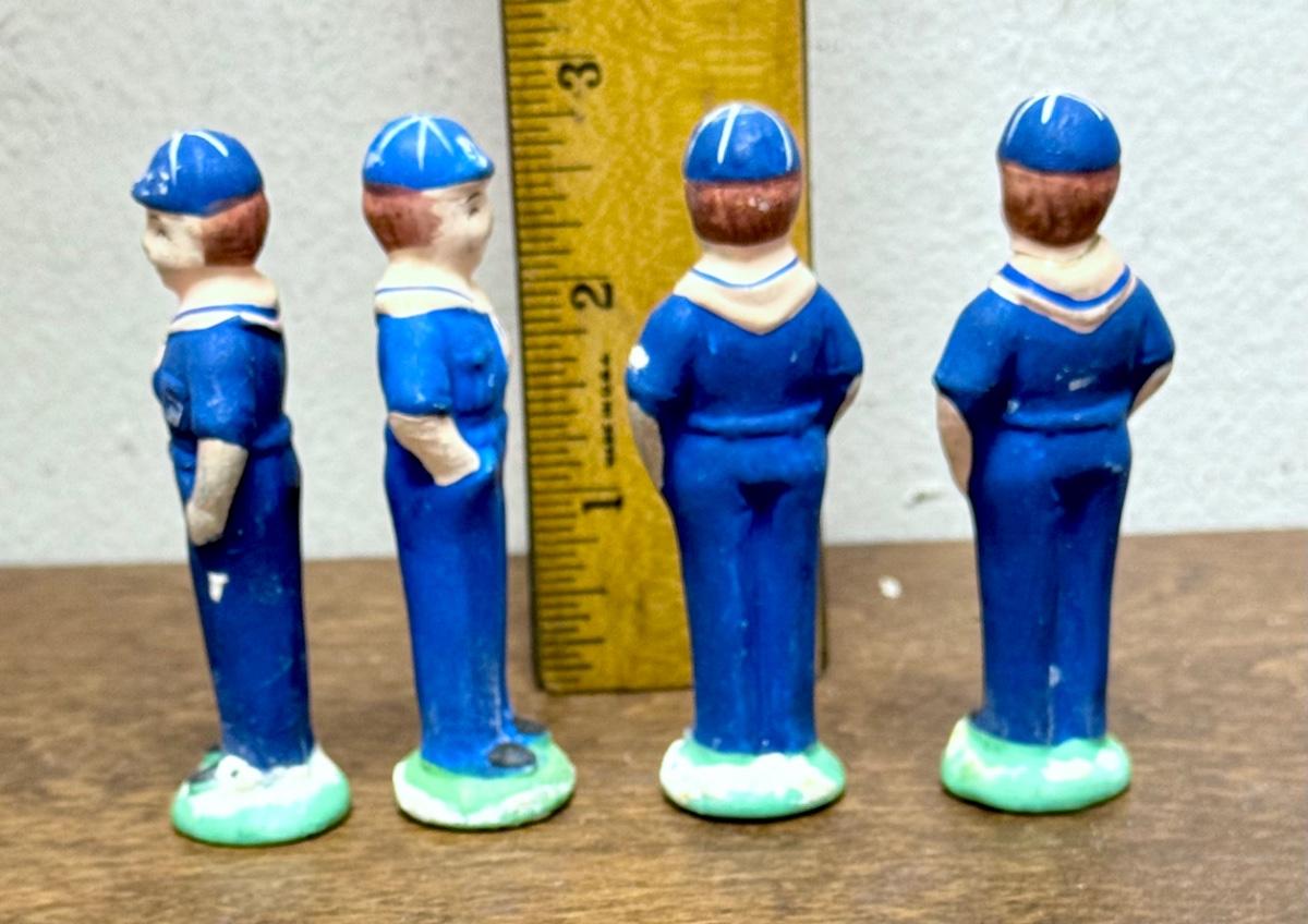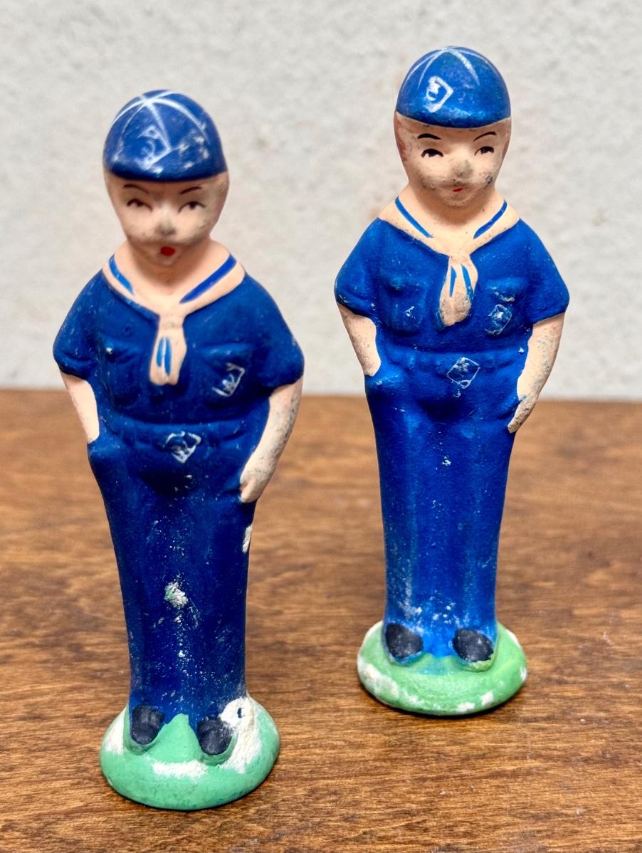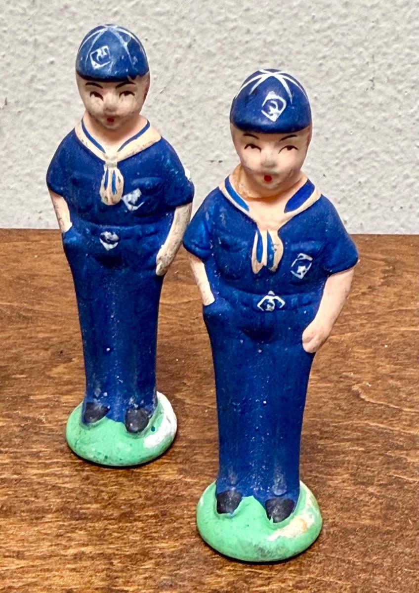 Set of 4 Cub Scout figurines. The one on the right end has been repaired, the head was glued back on (not very noticeable). Approx. 3” tall.