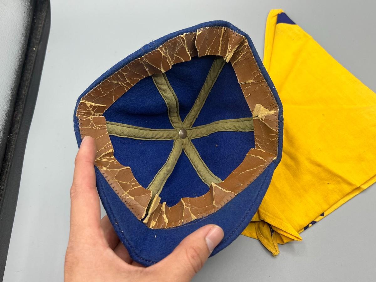 Vintage Cub Scouts BSA Handkerchief & Child Cap, there is some wear to the inside of the cap, but there is no other significant damage to the pieces and is in fair vintage condition. Check pictures for more details and for sizing.