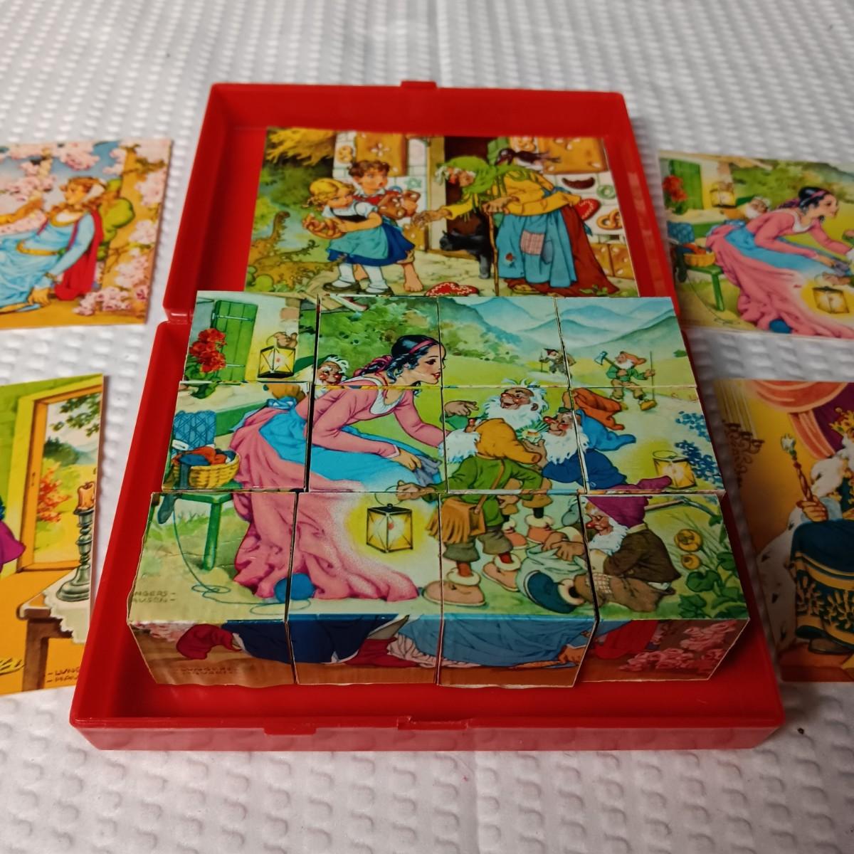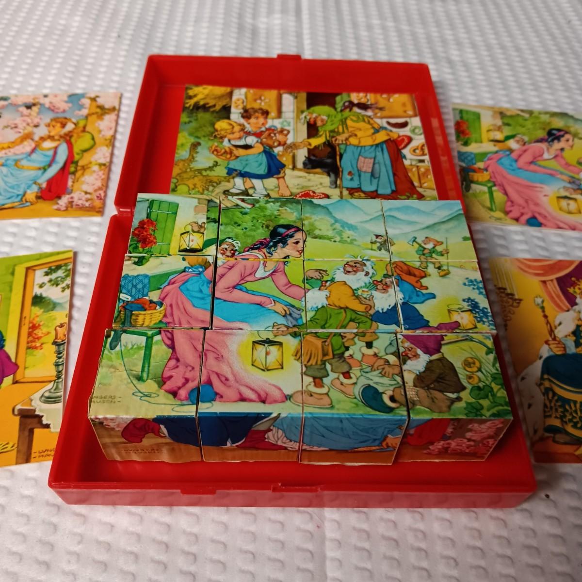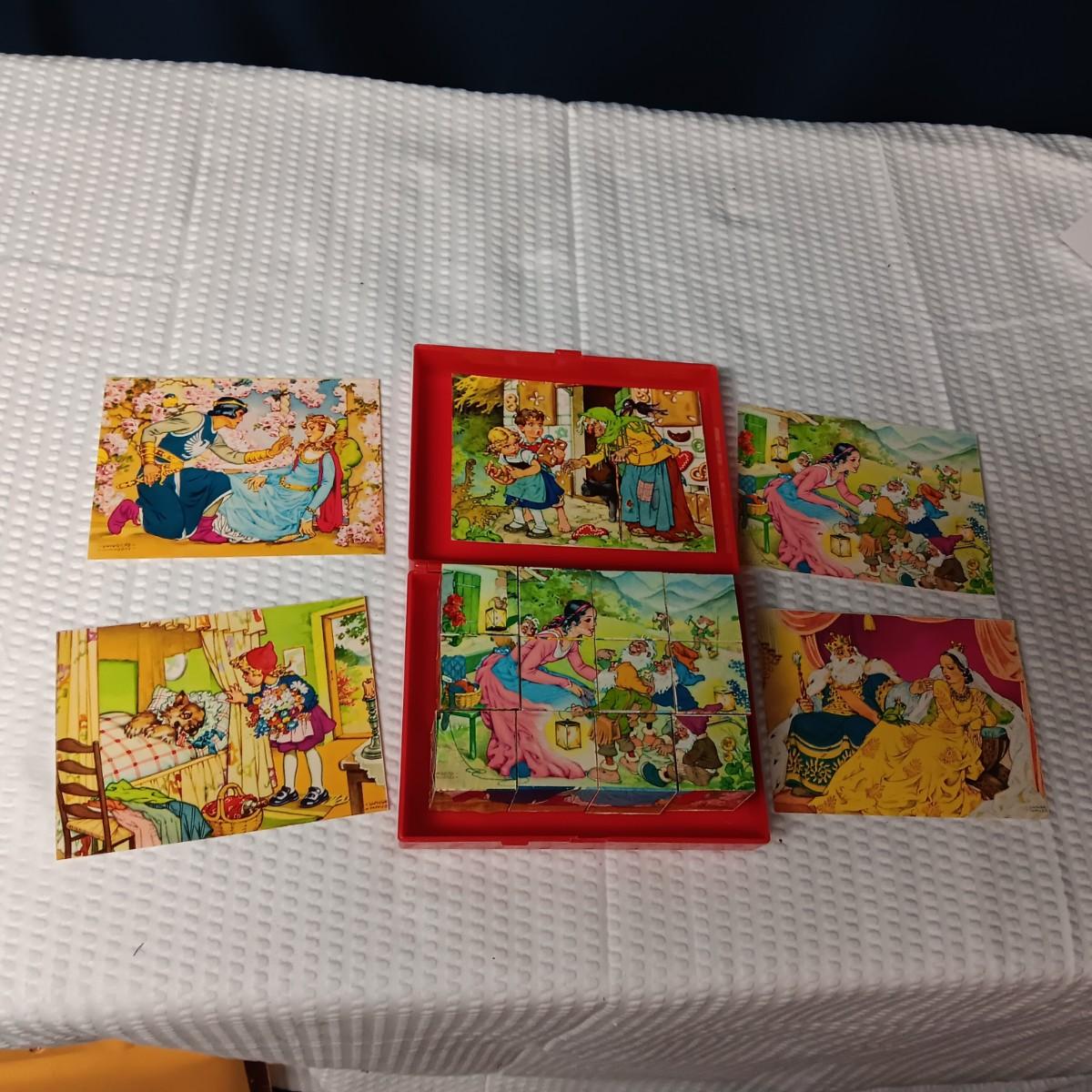VINTAGE CUBE PUZZLE WITH 5 DIFFERENT PICTURES/PUZZLES