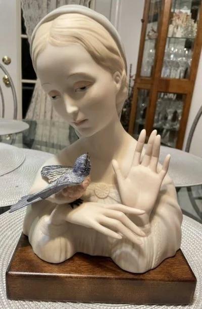 Vintage Cubis Porcelain "Madonna with Bird" 1956/57 on a Base - 11" Tall in VG Preowned Condition. $15 DOMESTIC SHIPPING.