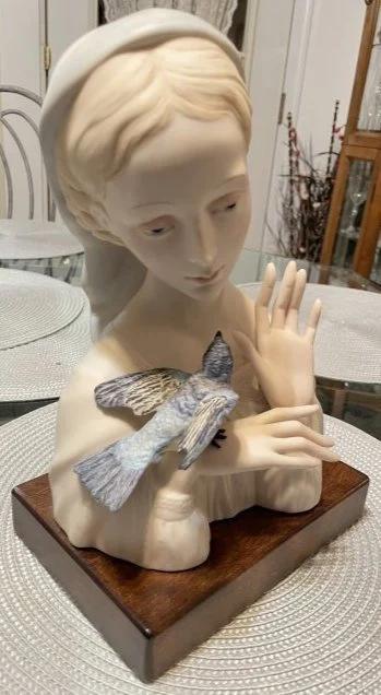 Vintage Cubis Porcelain "Madonna with Bird" 1956/57 on a Base - 11" Tall in VG Preowned Condition. $20 DOMESTIC SHIPPING.
