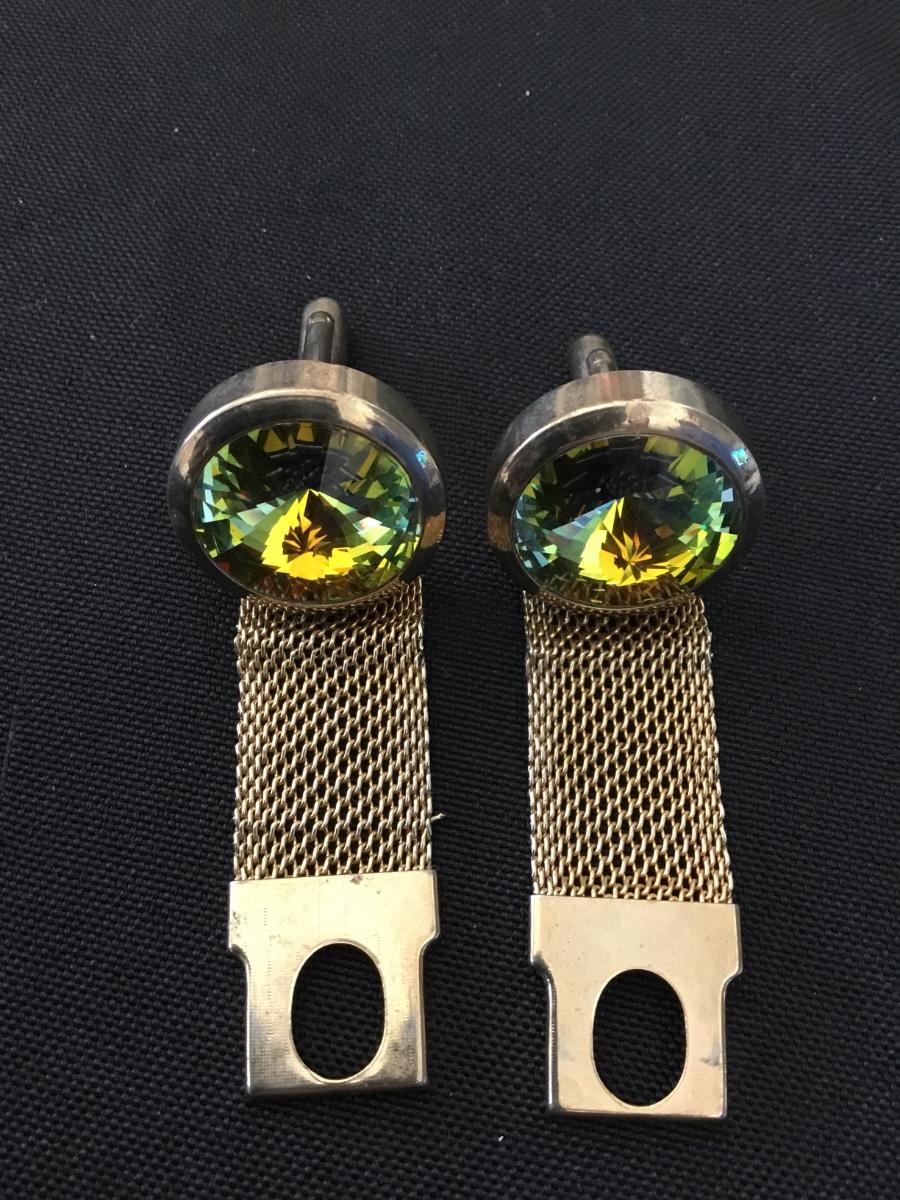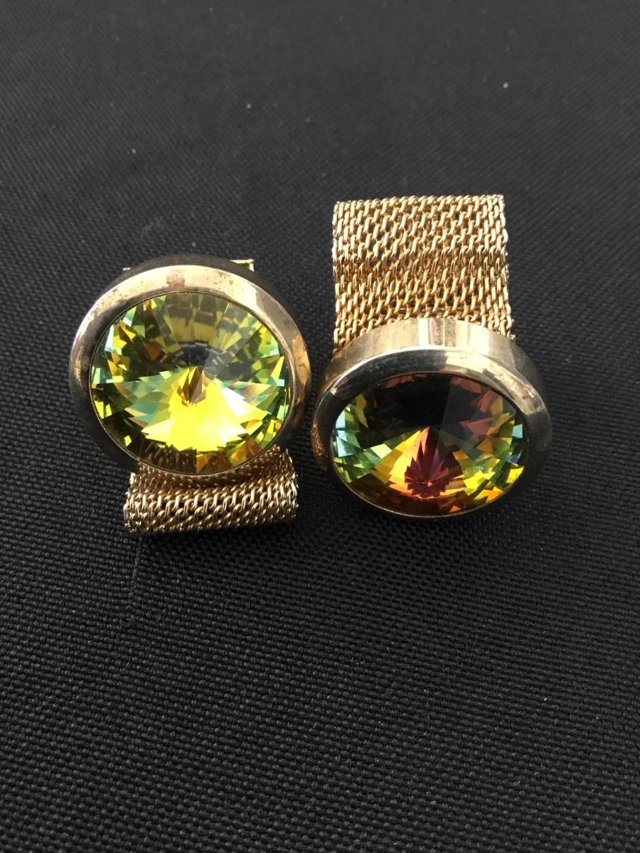 Vintage cufflinks Rivoli round watermelon, crystal rhinestone