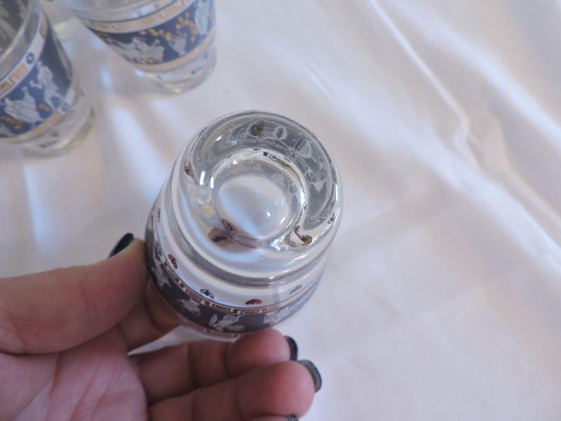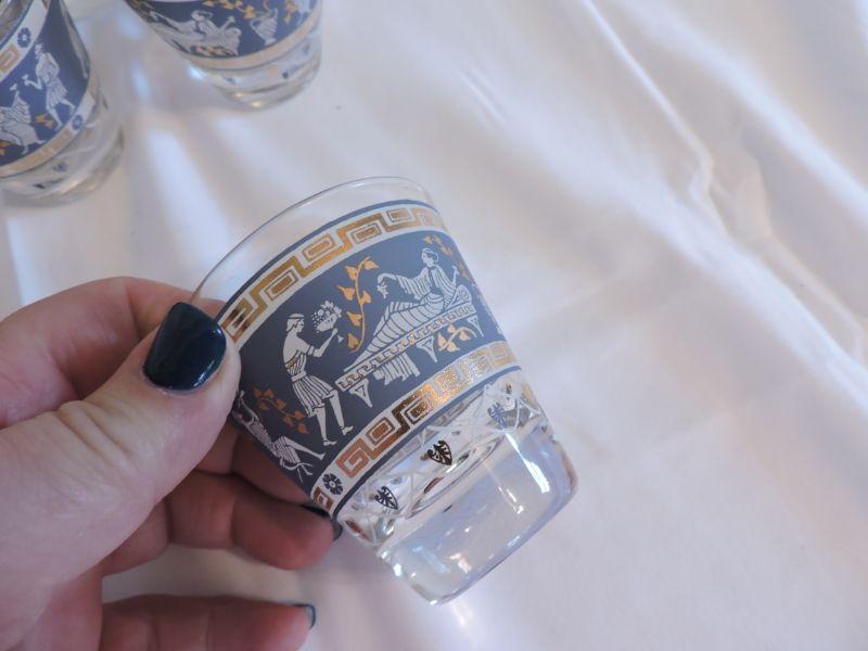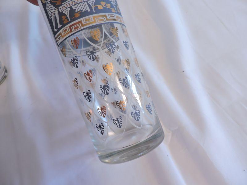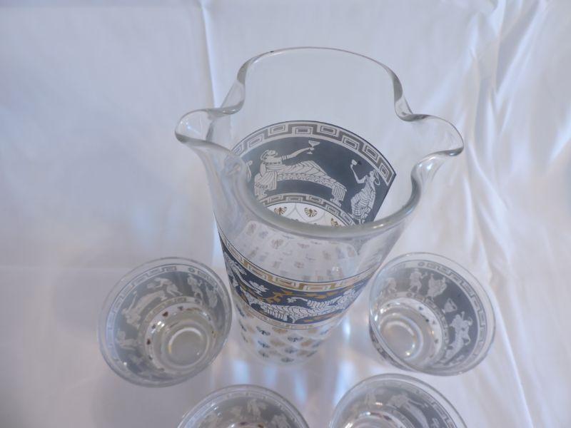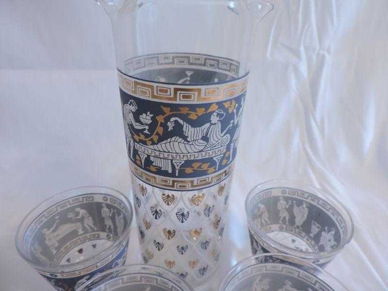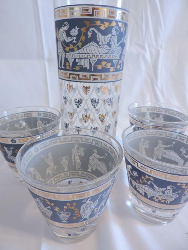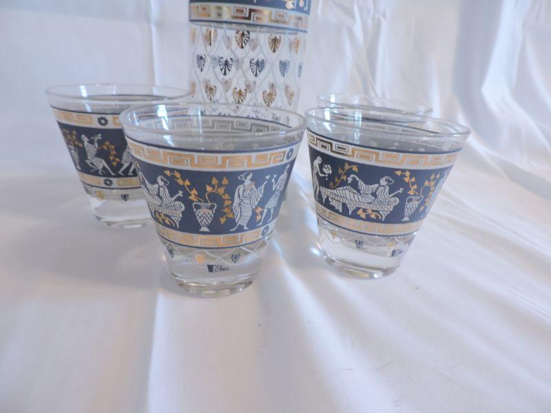Awesome Culver glass cocktail shaker or pitcher with double pour spouts. Blue & gold Greek Pattern. Mid century modern.**Please read Terms and Conditions before placing a bid. Pick up is Saturday, November 30 from 9am to 3pm in Bridgeton, NJ. All sales are final. All sales are as is, where is. Please review all photos. Any props included in photos are not included in listing. All measurements are approximate.