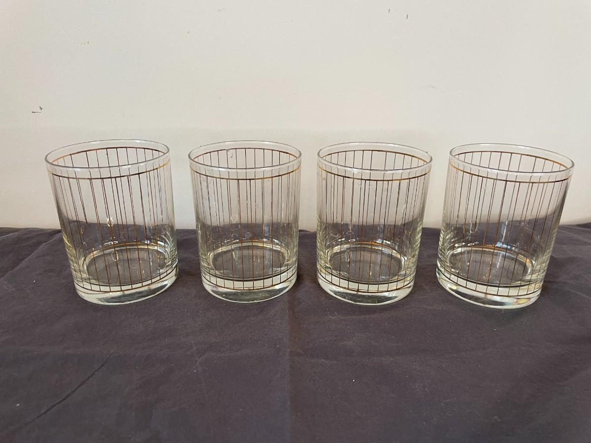Vintage Culver Devon Stripe 22Kt Gold Old Lowball Whiskey Glass