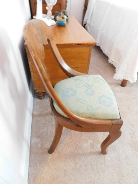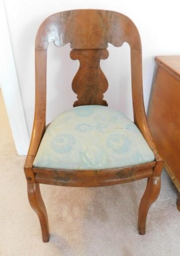 Vintage Curly Maple Urn Back Chair with Upholstered Seat #1 of 2 has a few stains on seat