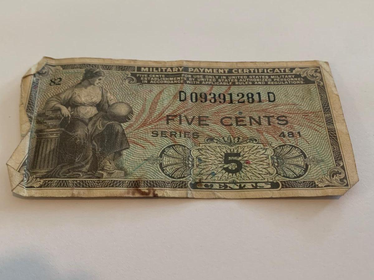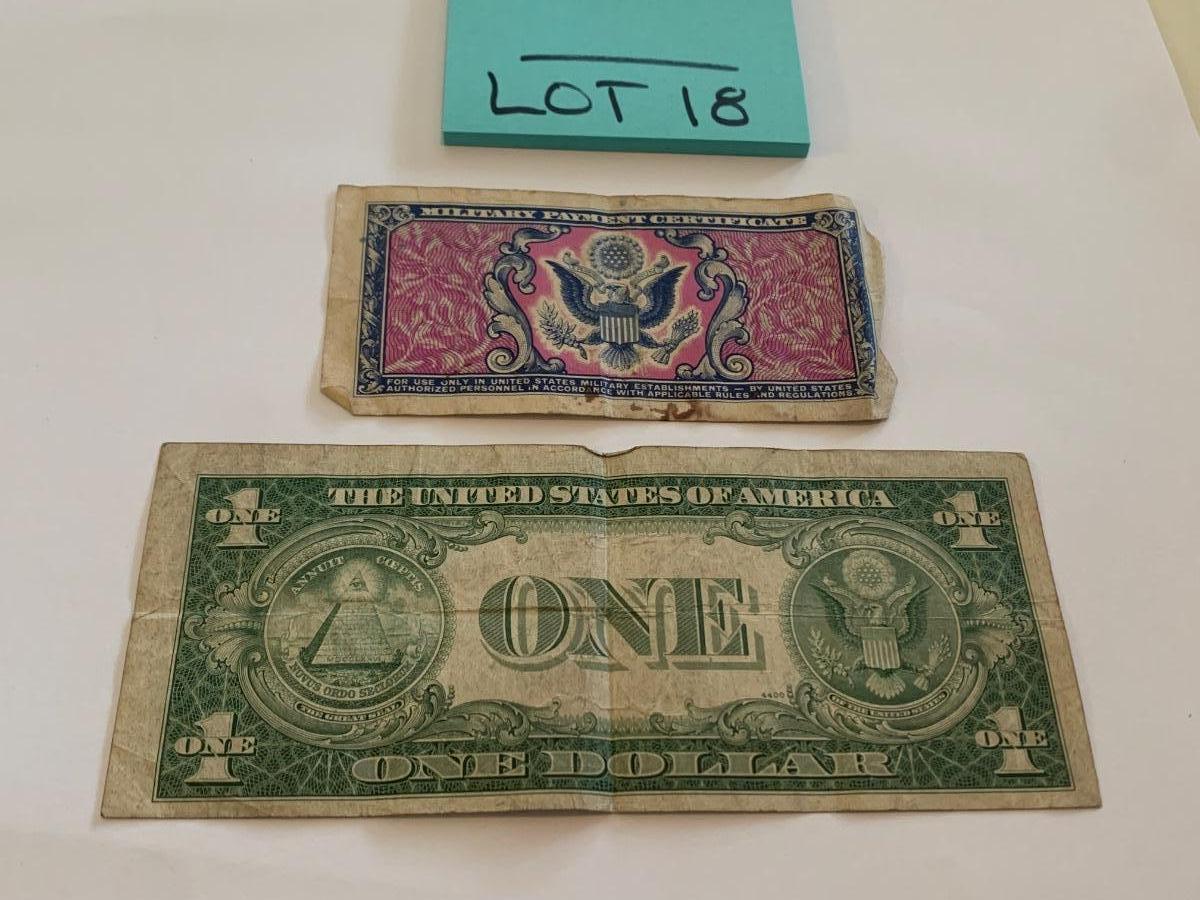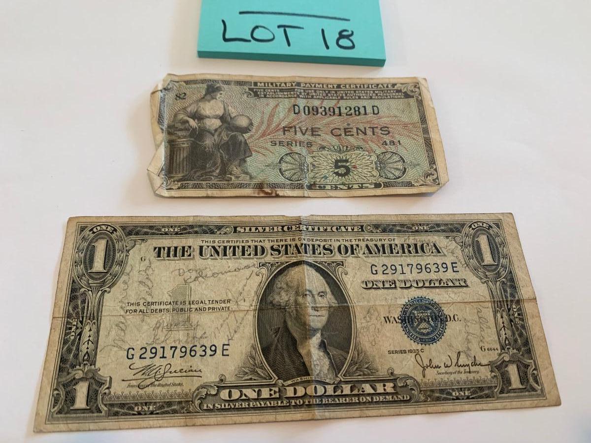 Vintage Currency Lot 1935C Silver Cert & 5 Cent Military Payment Cert