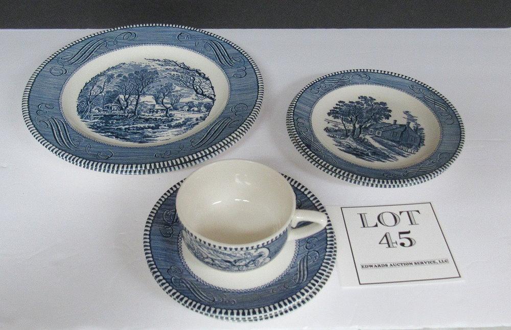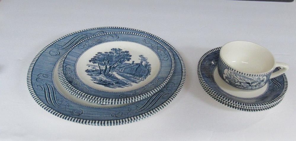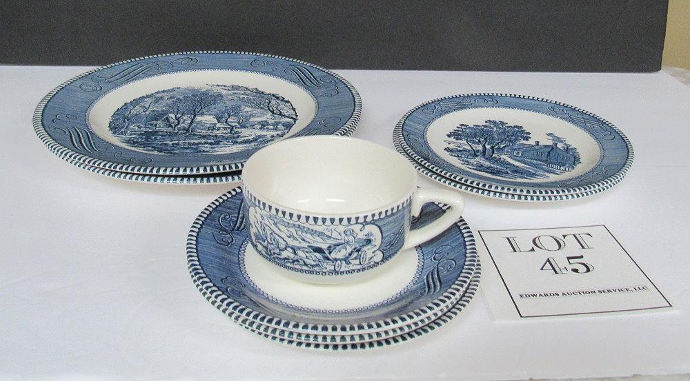 Vintage Currier and Ives, Cup and Saucer, 2 Large Plates, 2 Small Plates, 2 Extra Saucers