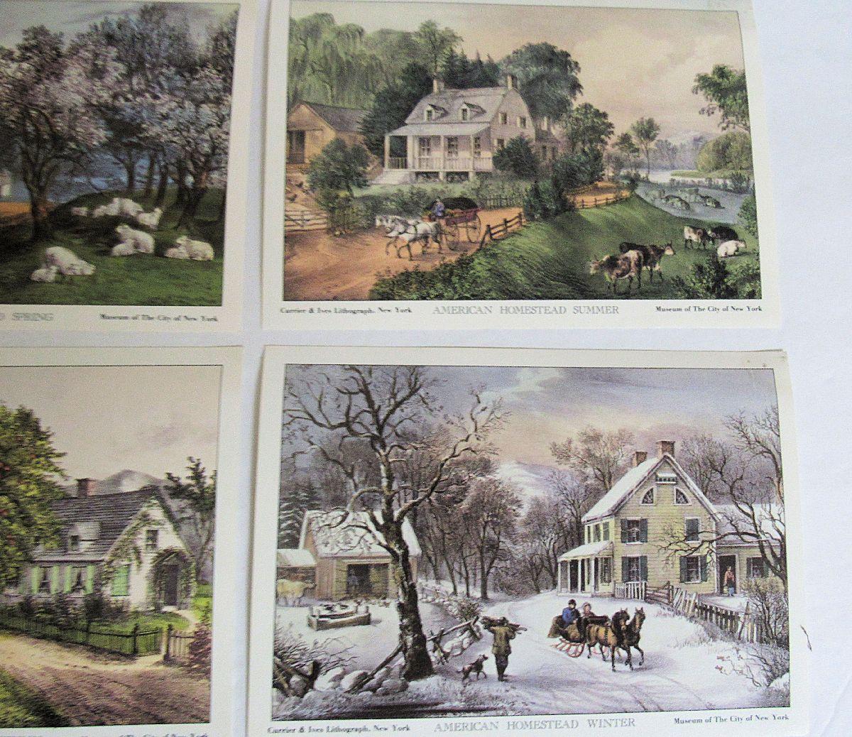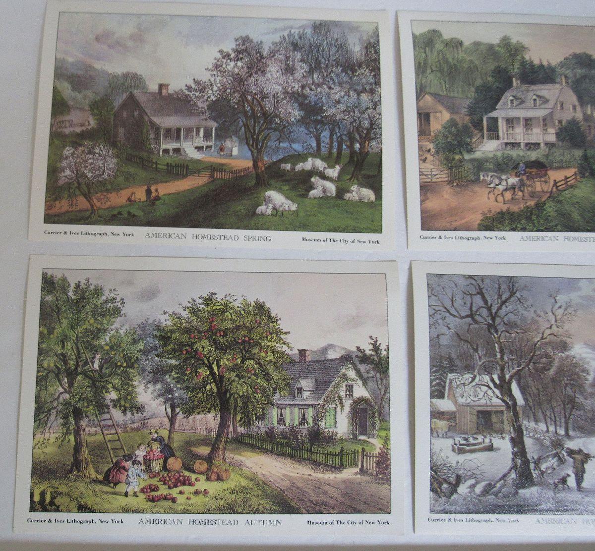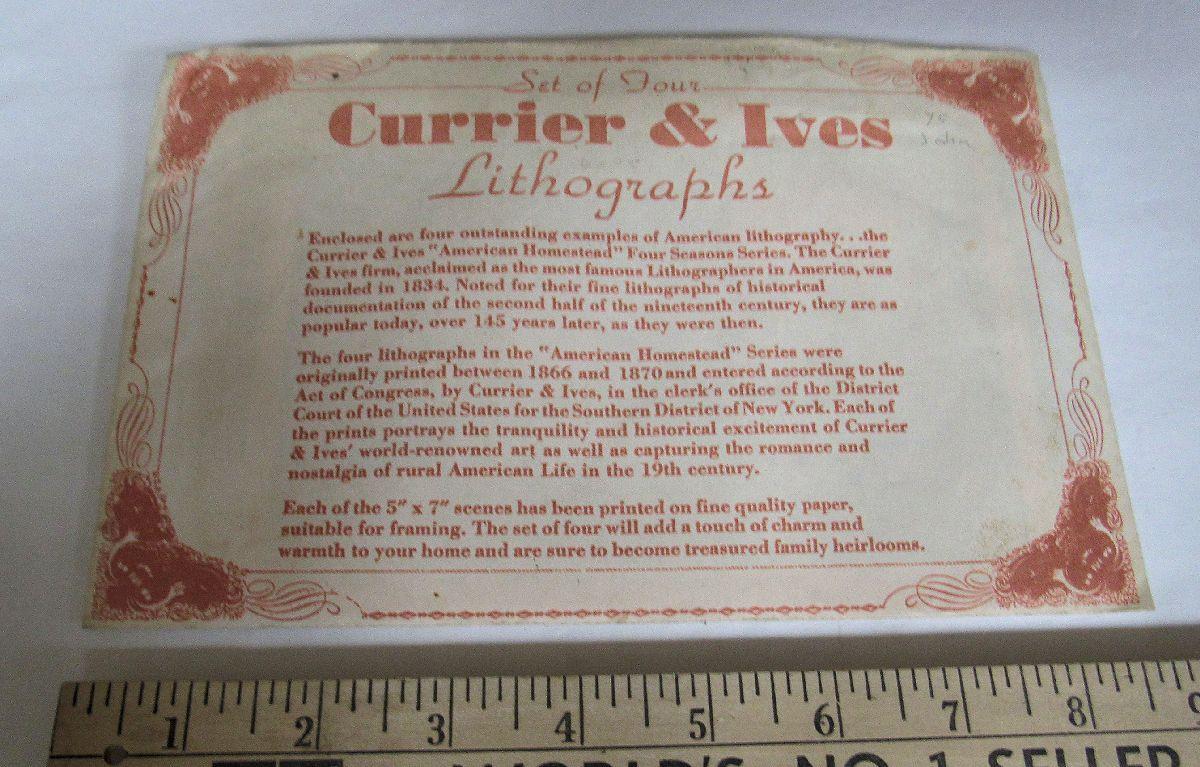 Vintage Currier and Ives Small Ready To Frame Lithograph Prints, 5" x 7"