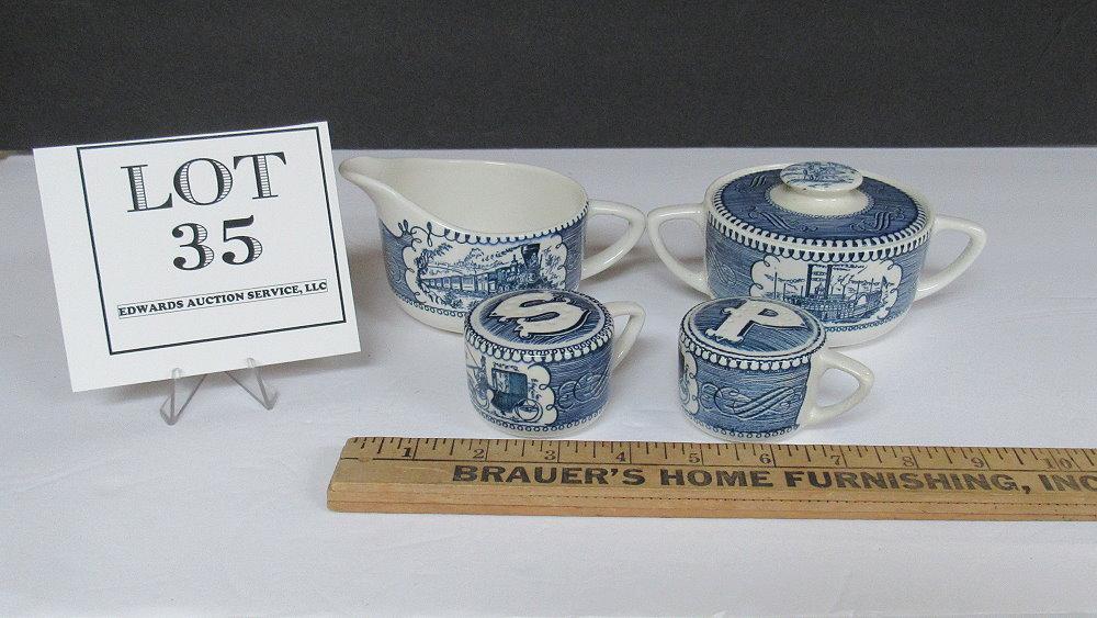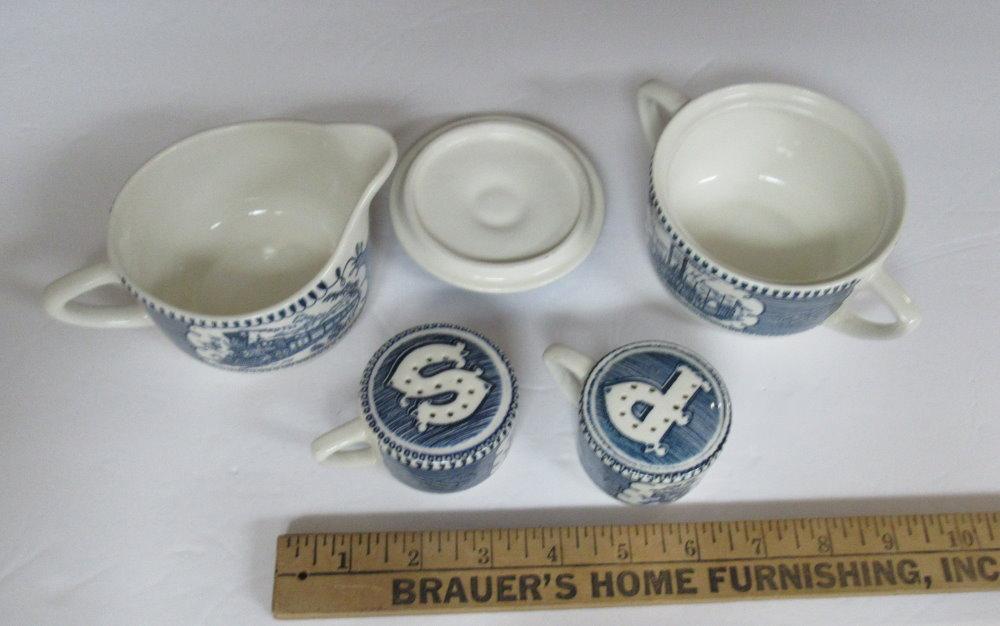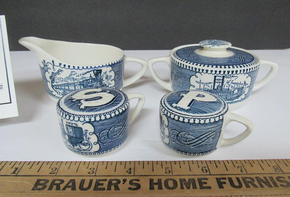 Vintage Currier and Ives Sugar, Creamer, Salt and Pepper