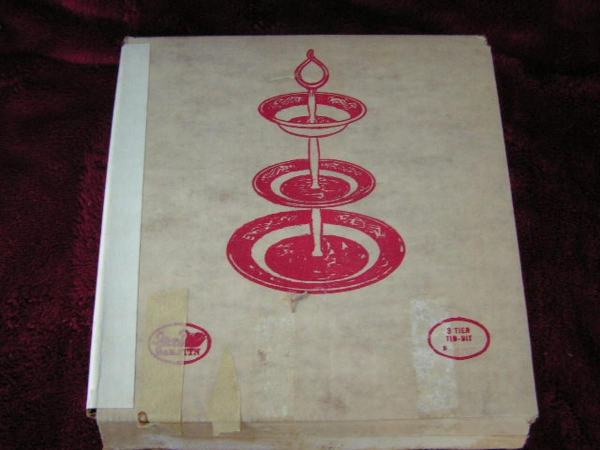 Vintage Currier & Ives appetizer 3 tier tid-bit tray. Winter scenes on plates. Gold tone hardware. In OEM box with label “C&I BLUE 607". Complete and looks like new/unused. About 15" tall