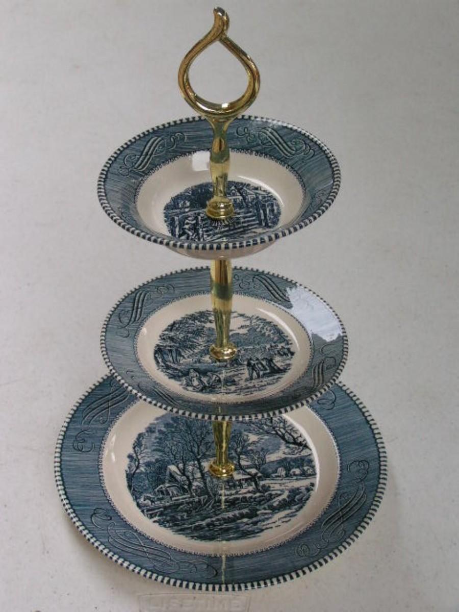 Vintage Currier & Ives appetizer 3 tier tid-bit tray.