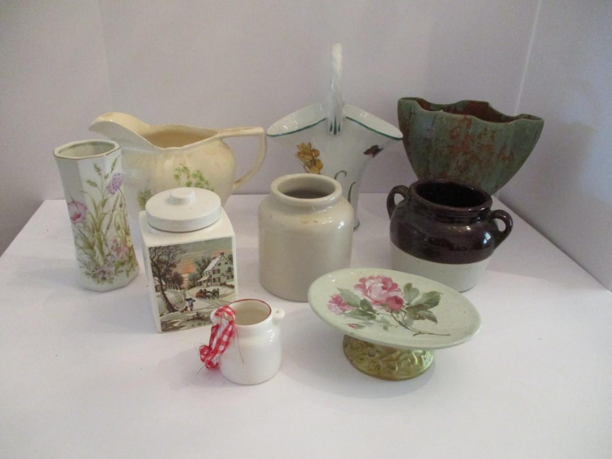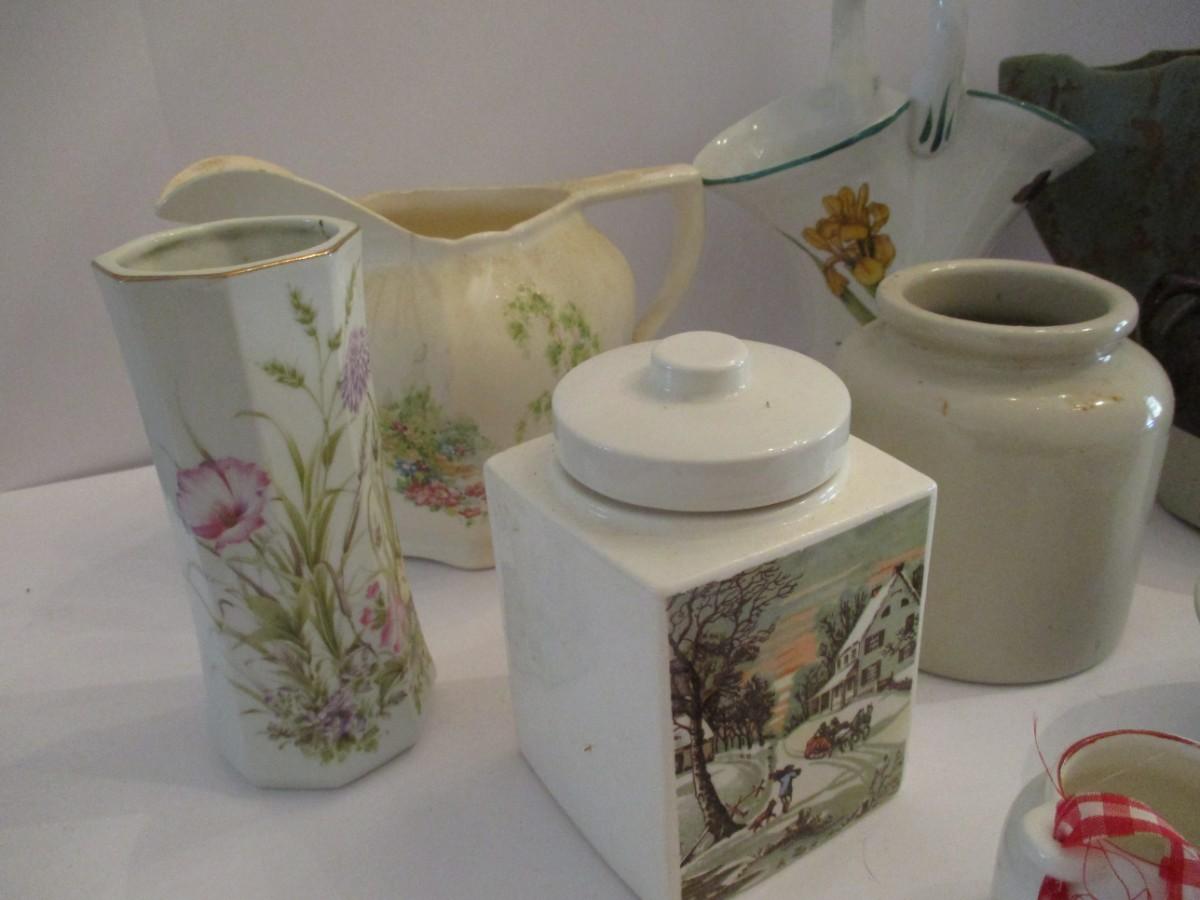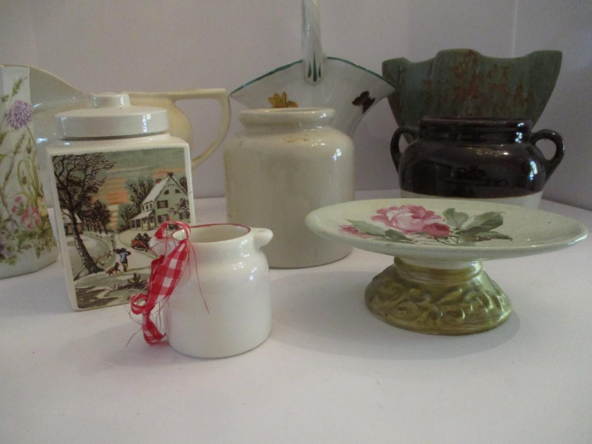 Vintage Currier Ives Container Japanese Bud Vase Octagon Stoneware Vases