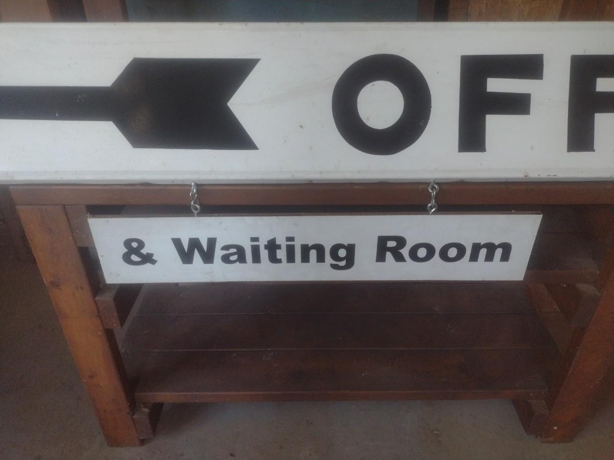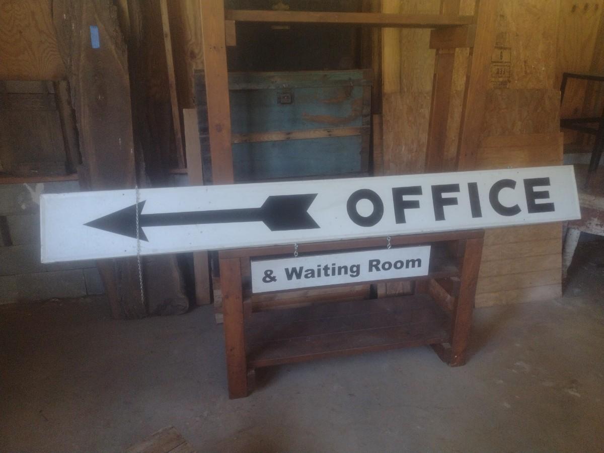 Vintage Custom Metal Commercial Sign Office with Arrow and Wood Bottom Sign Waiting Room