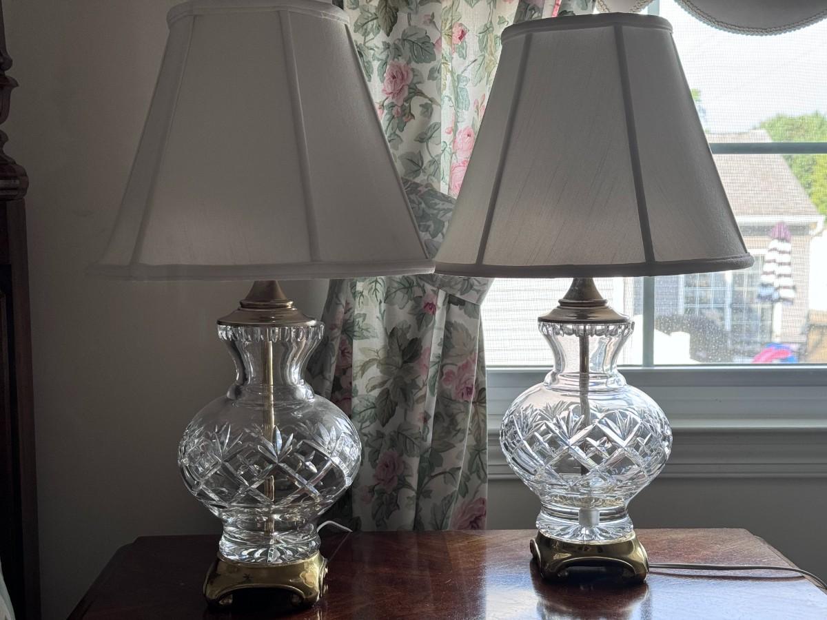 Vintage Cut Crystal and Brass Table Lamps- Set of 2