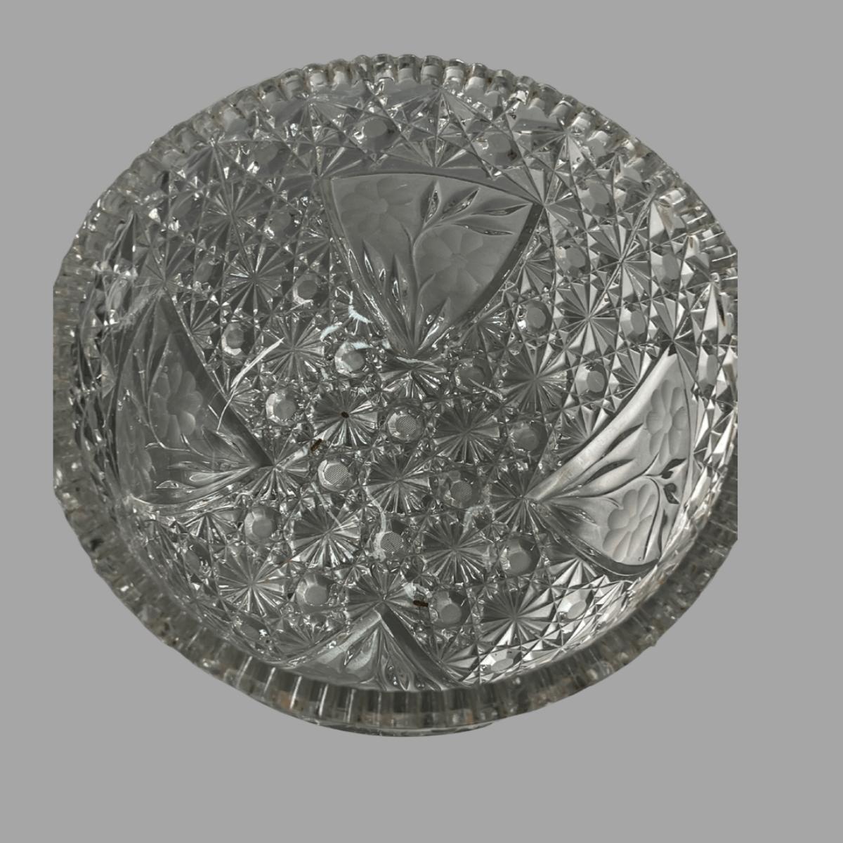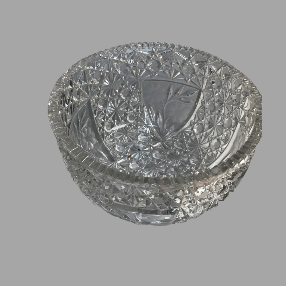This bowl measures 8 x 4 and is gorgeous. Vintage cut crystal.