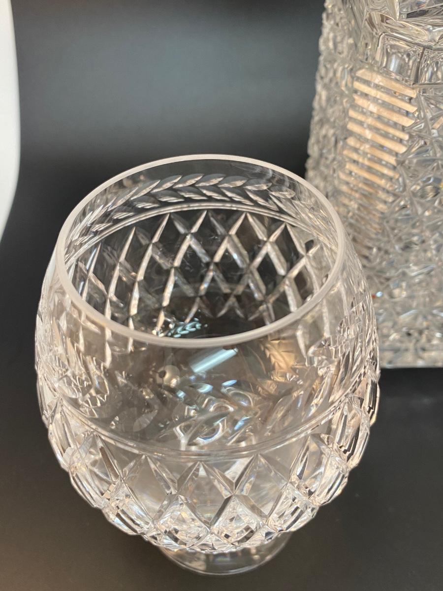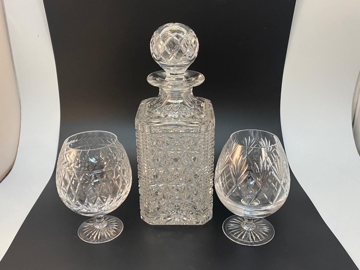 Vintage Cut Crystal Decanter with Two Brandy Snifters Barware Drink Glasses