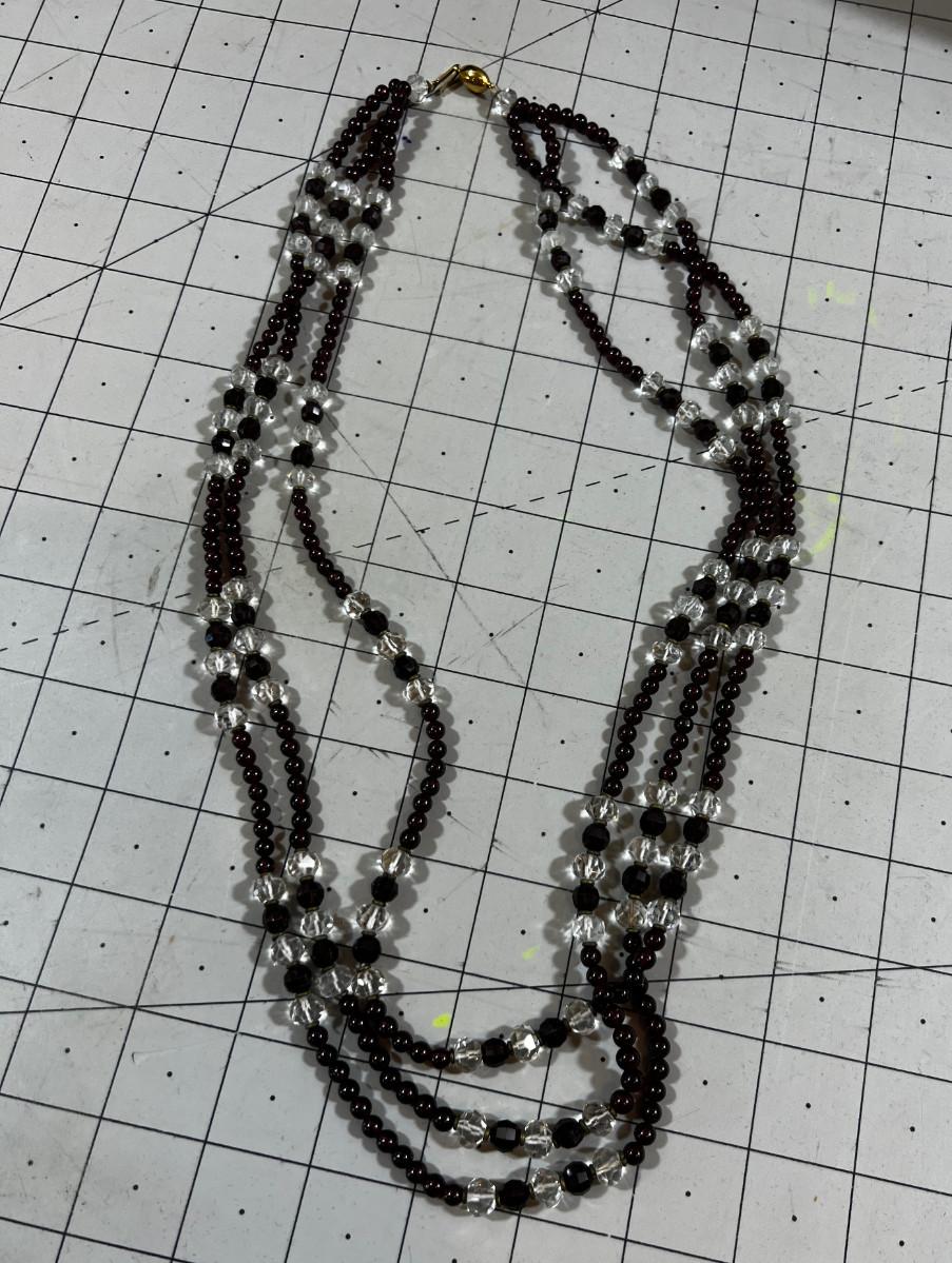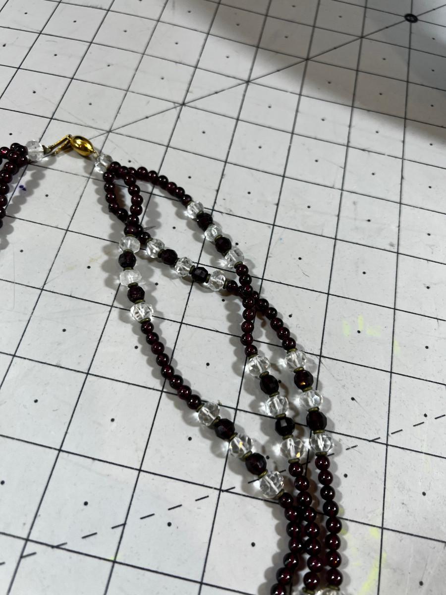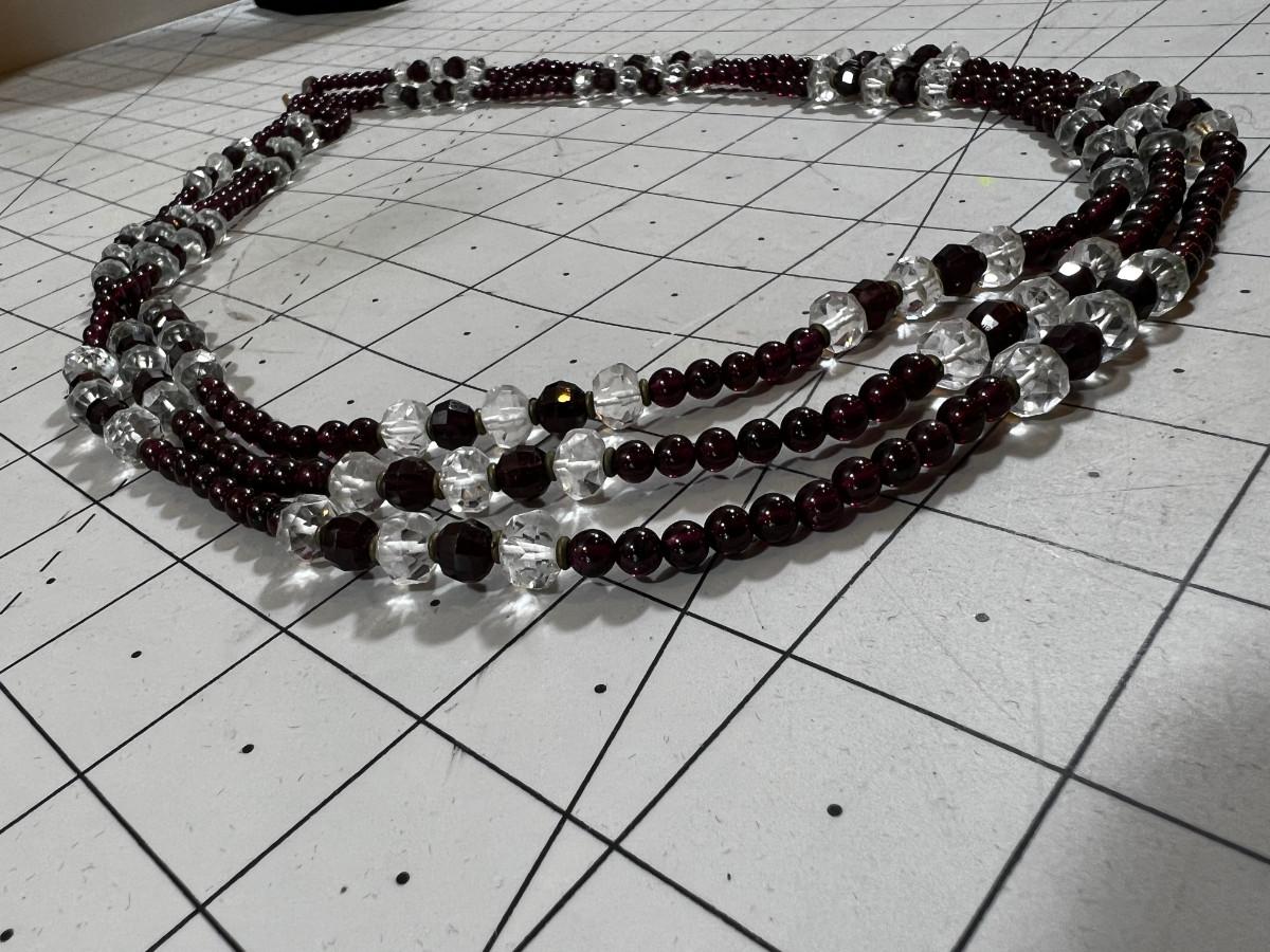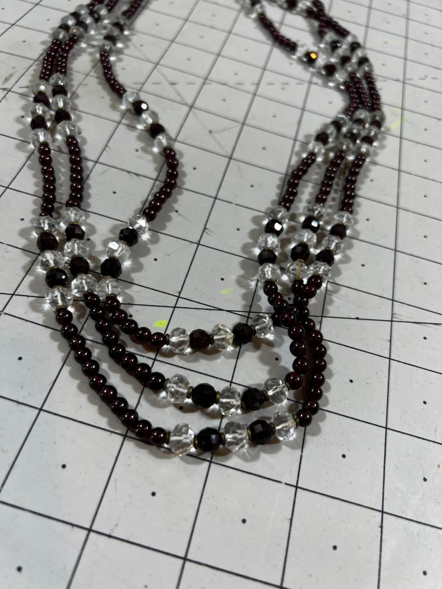 Vintage Cut Glass, 3 Strand, Brown/Purple and Clear Beads