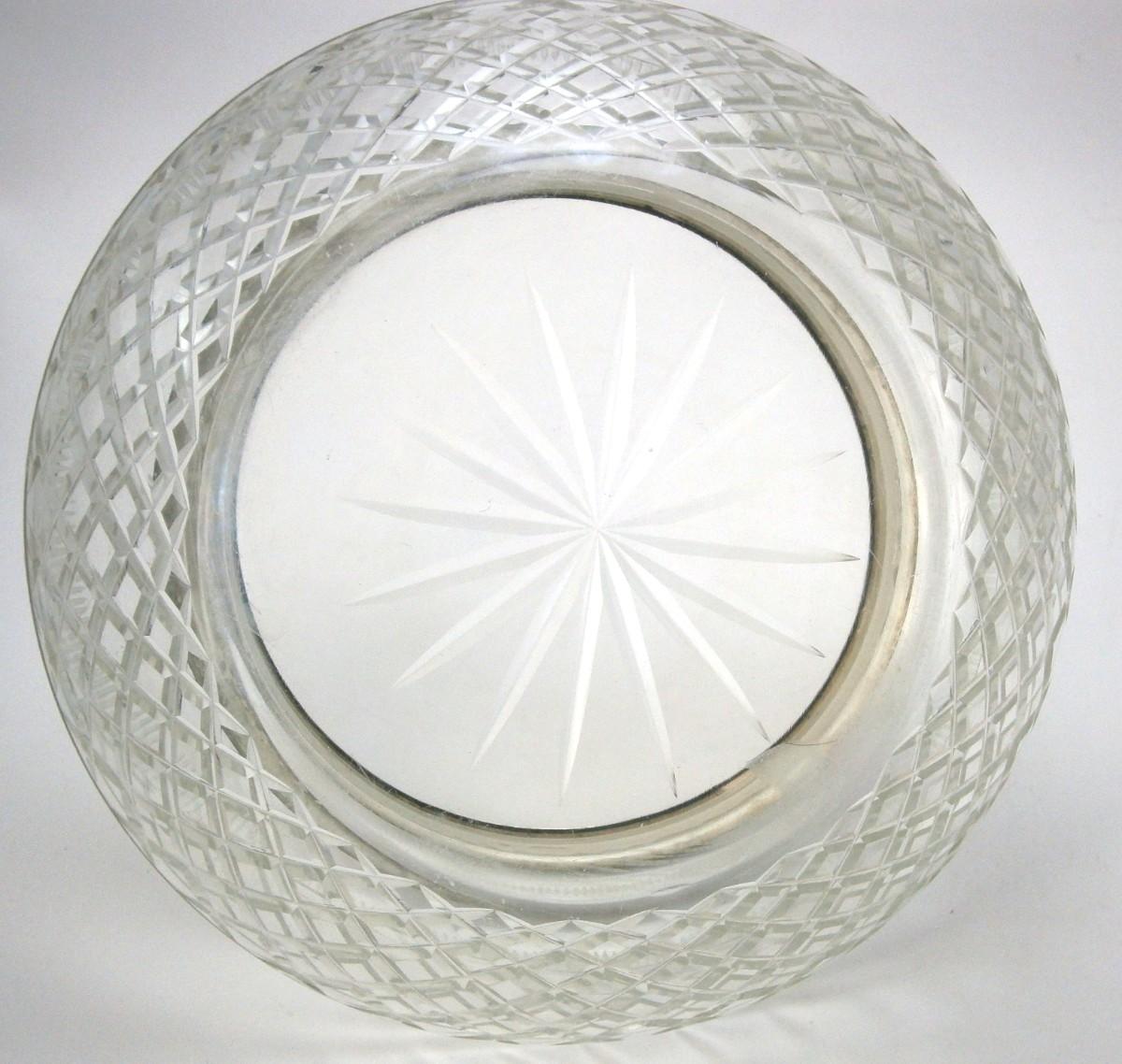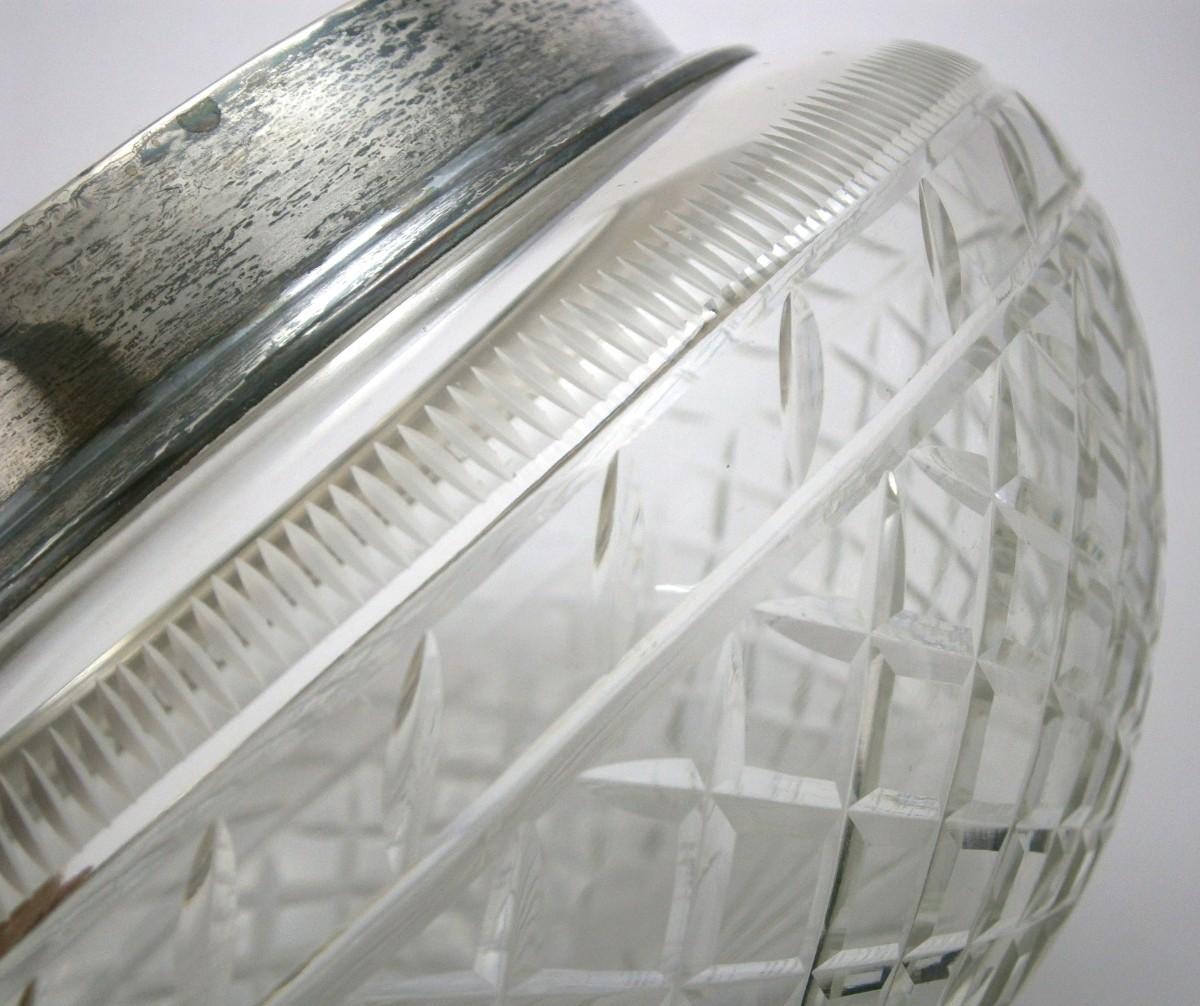 Vintage Cut Glass Bowl with Sterling Silver Rim