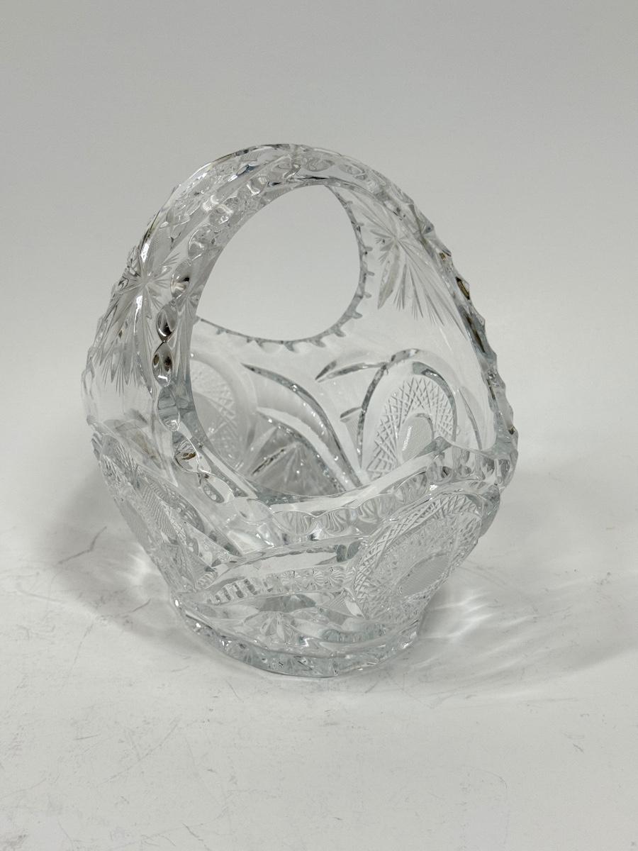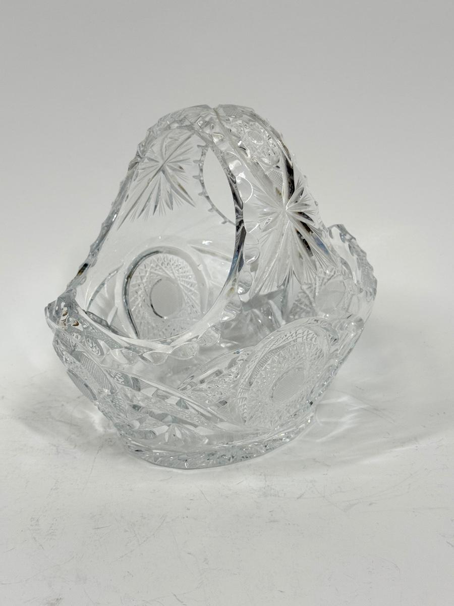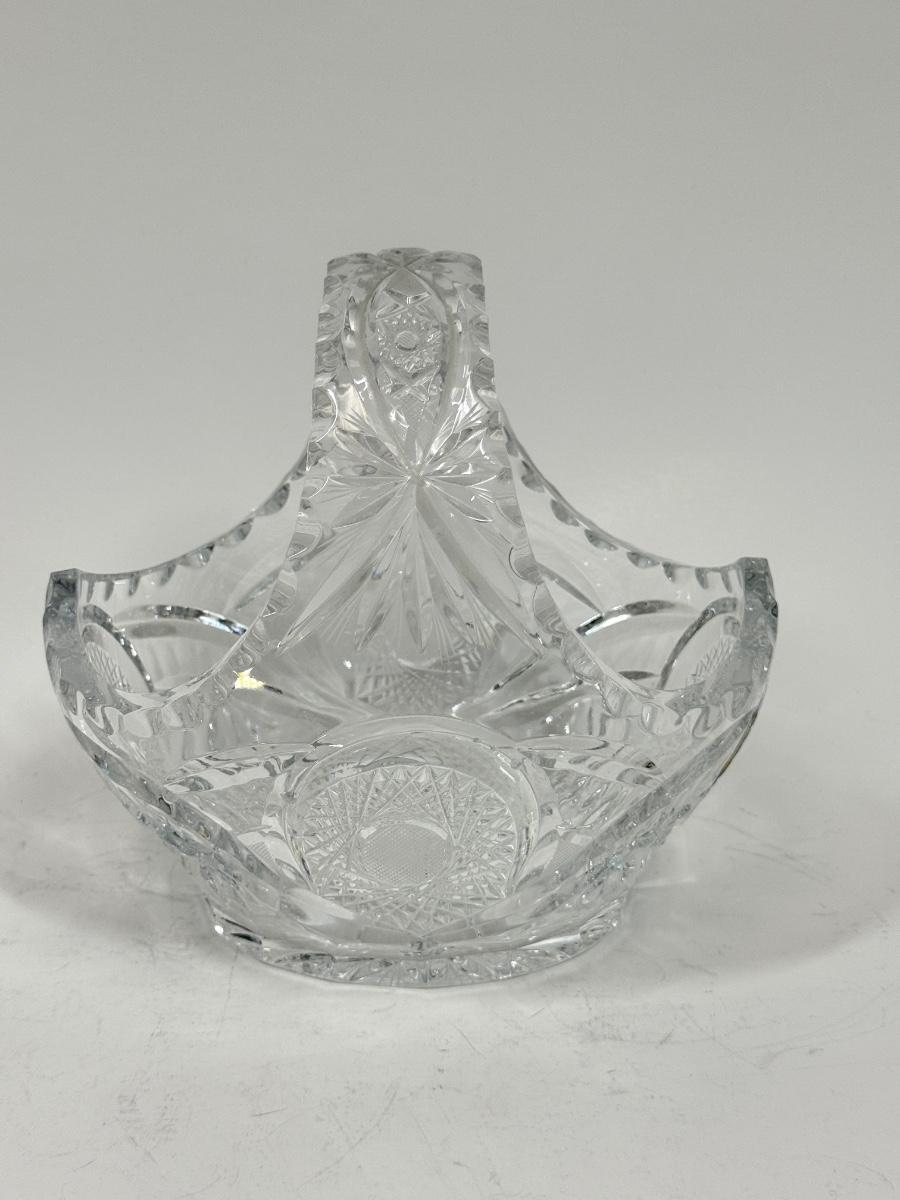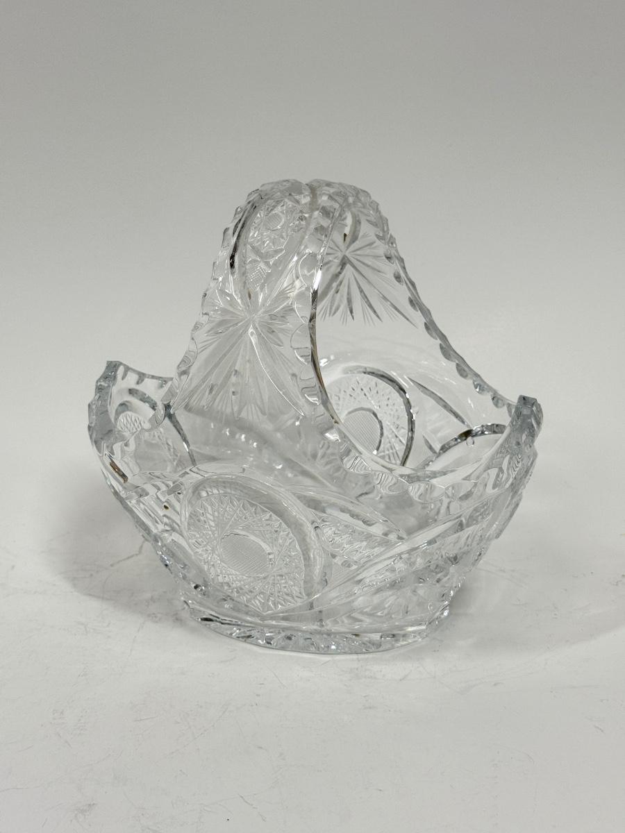 Vintage Cut Glass Crystal Basket Candy Fruit Bowl