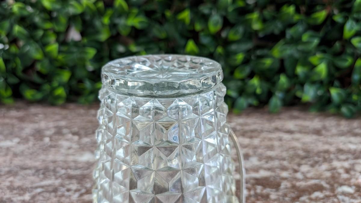 Vintage Cut Glass Crystal Ice Bucket with Silverplate Rim and Handle