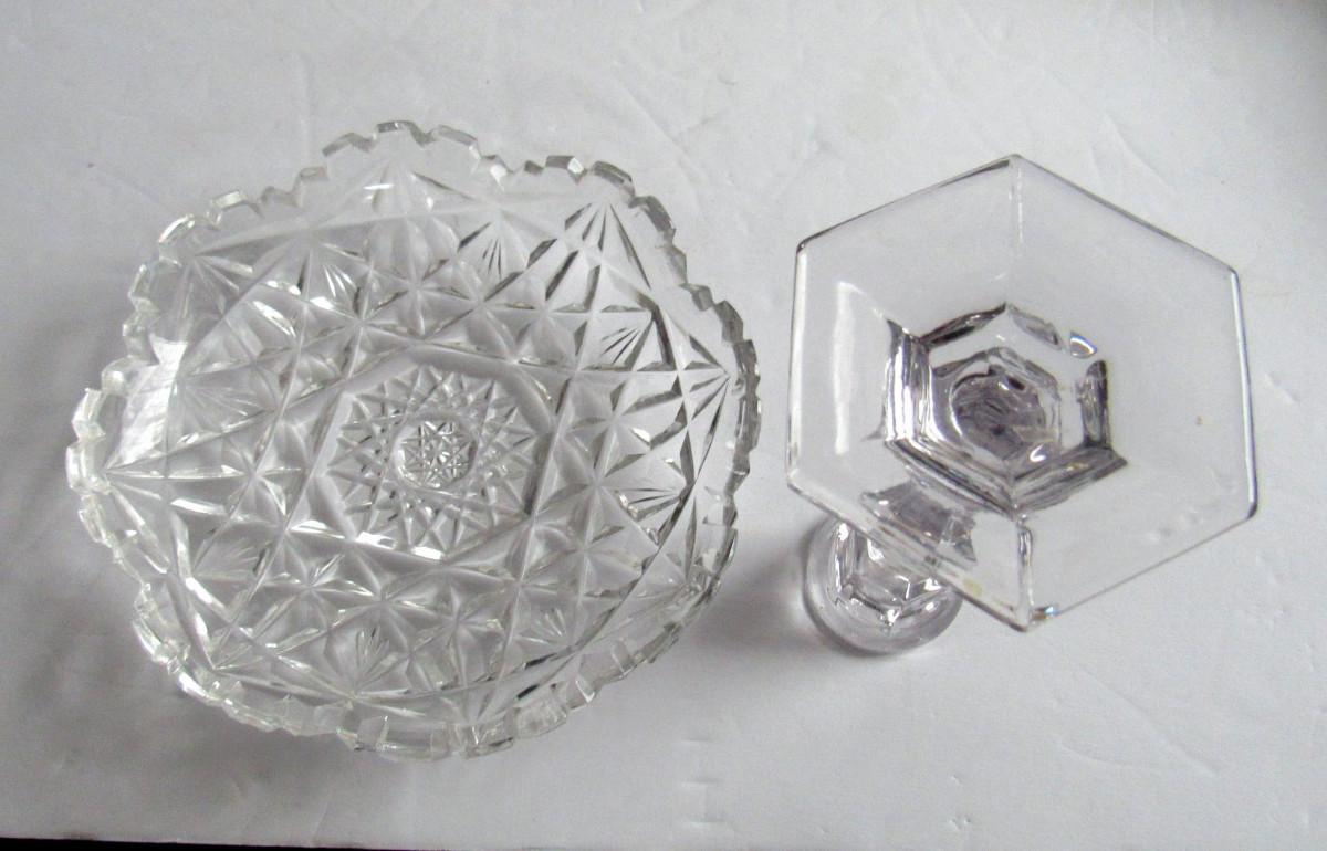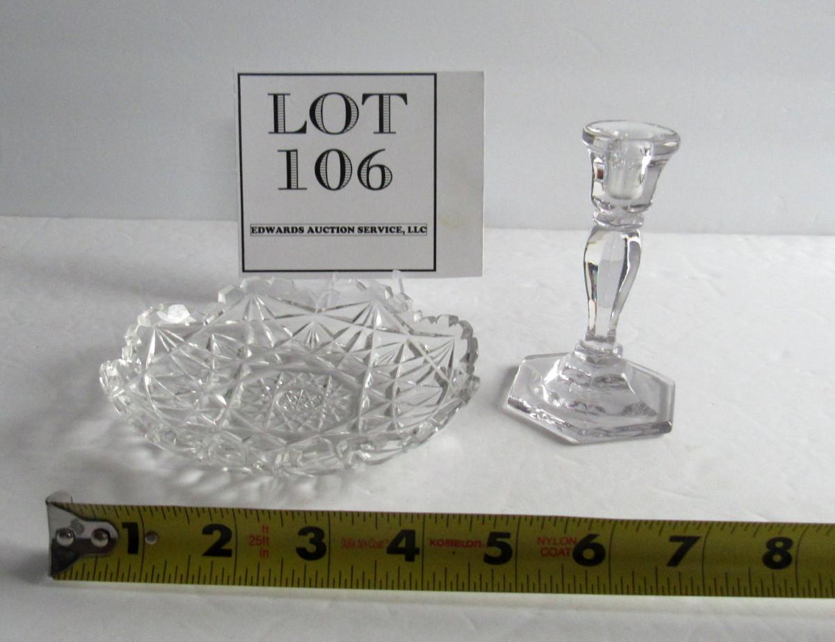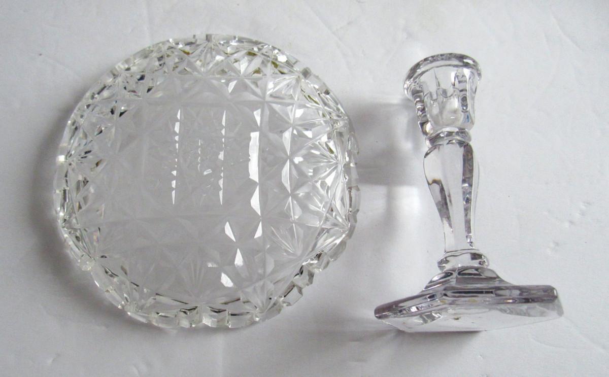Vintage Cut Glass Small Dish and Miniature Glass Candlestick