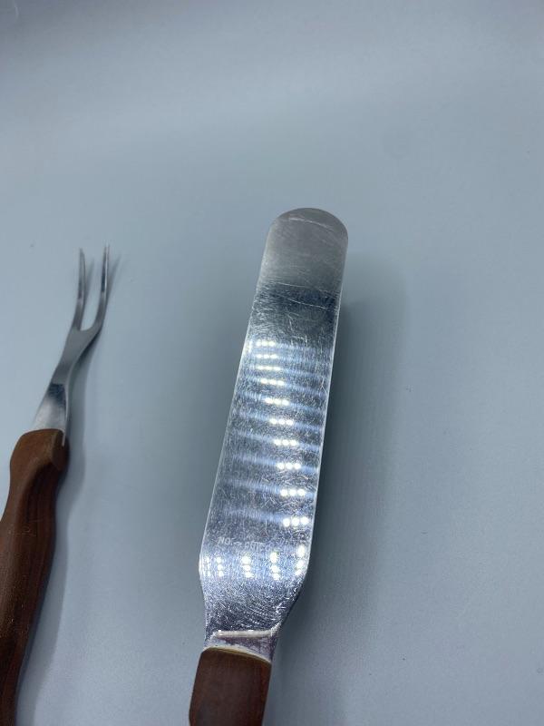 Vintage CUTCO #28 Spreader Spatula and #26 Meat Fork Wood Grain Handles