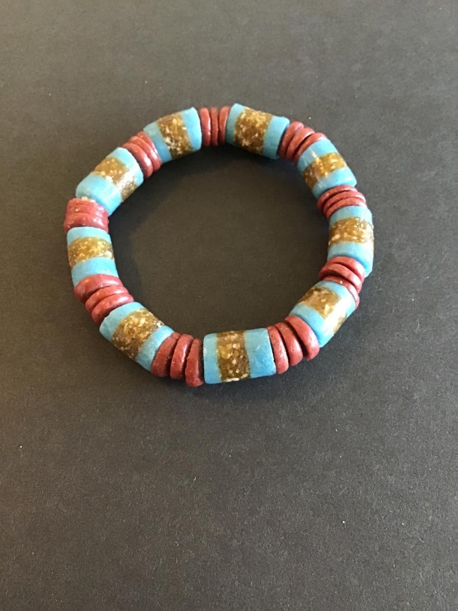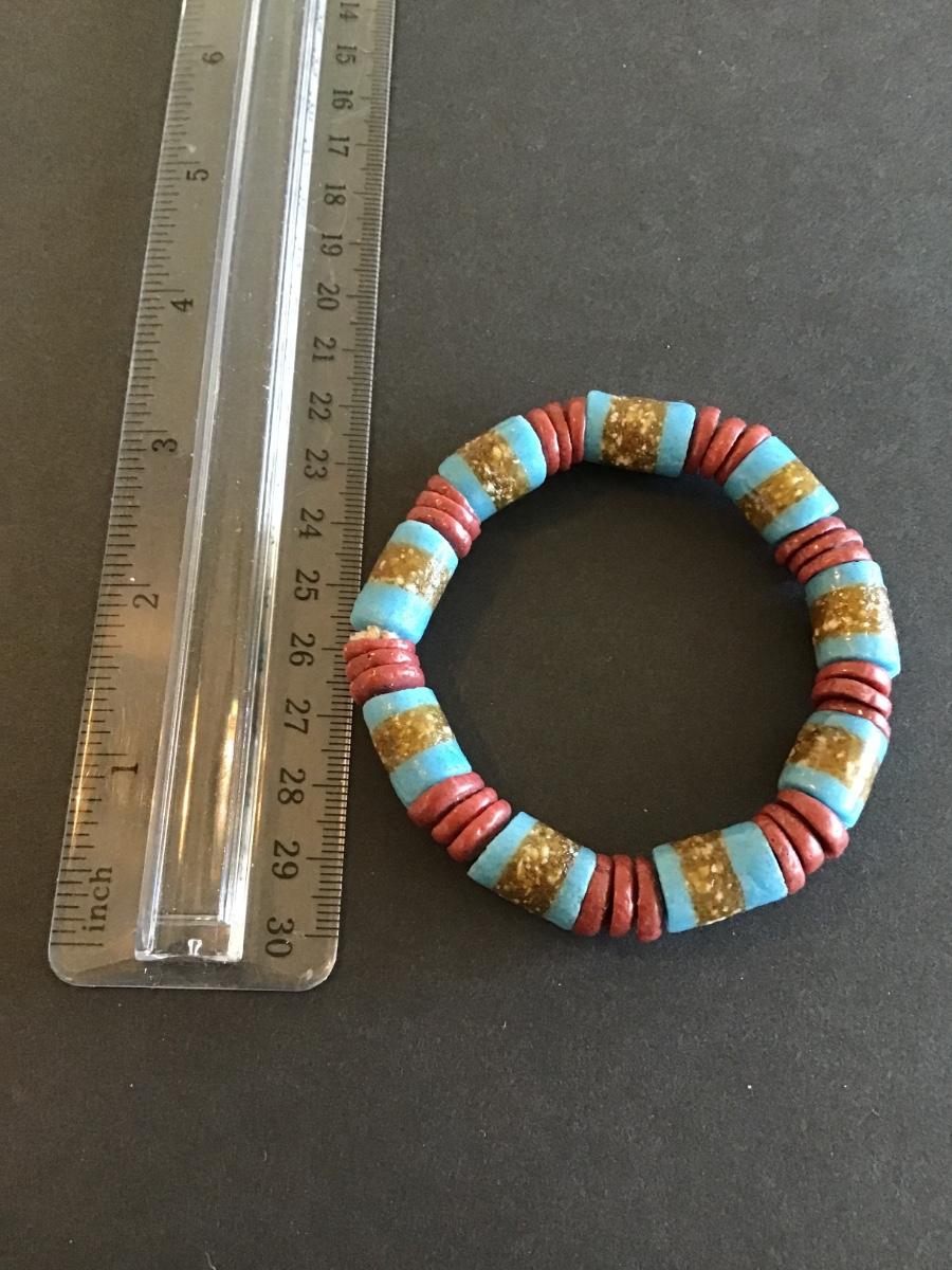 Vintage cylindrical turquoise style beads with red disc shaped bracelet Please see attached photos