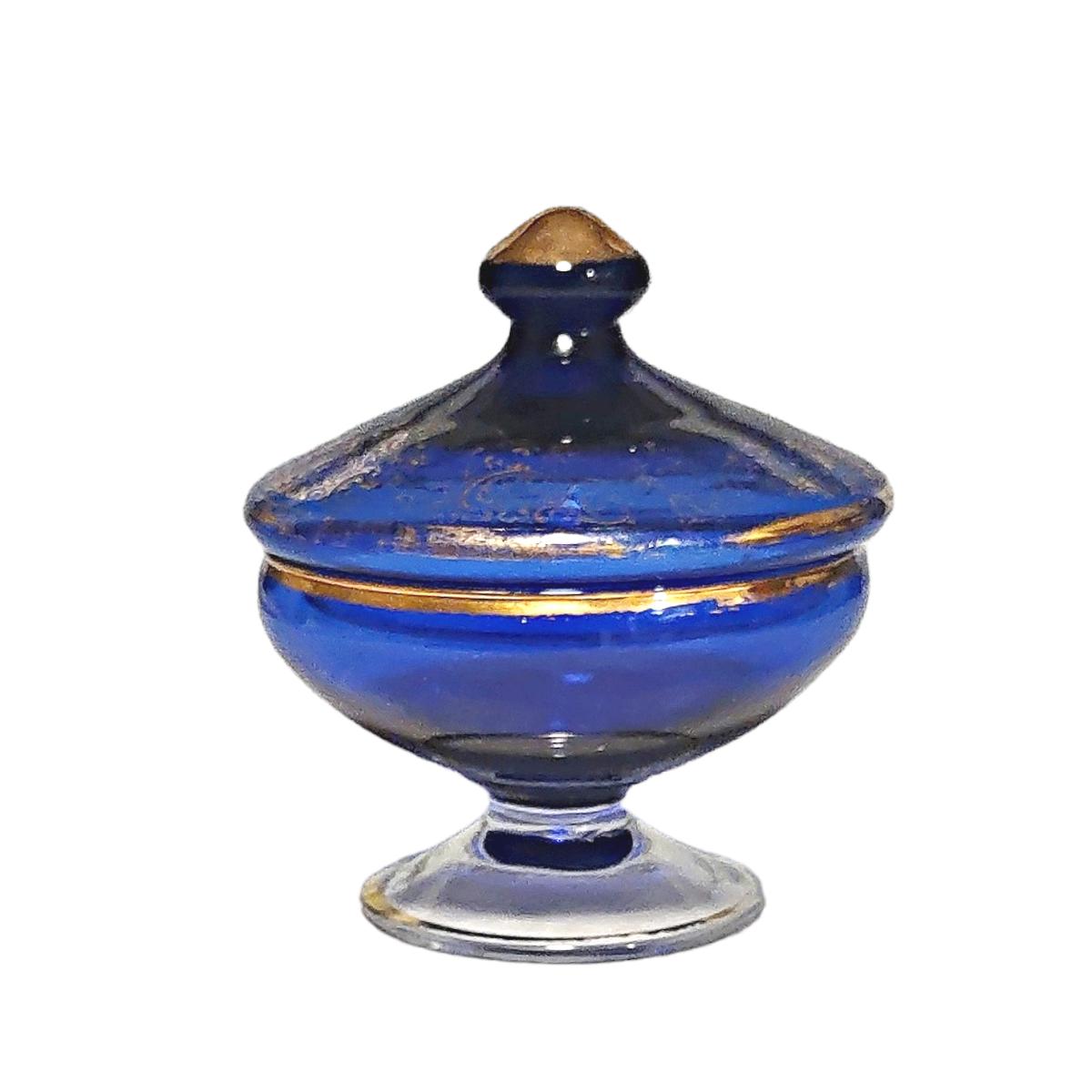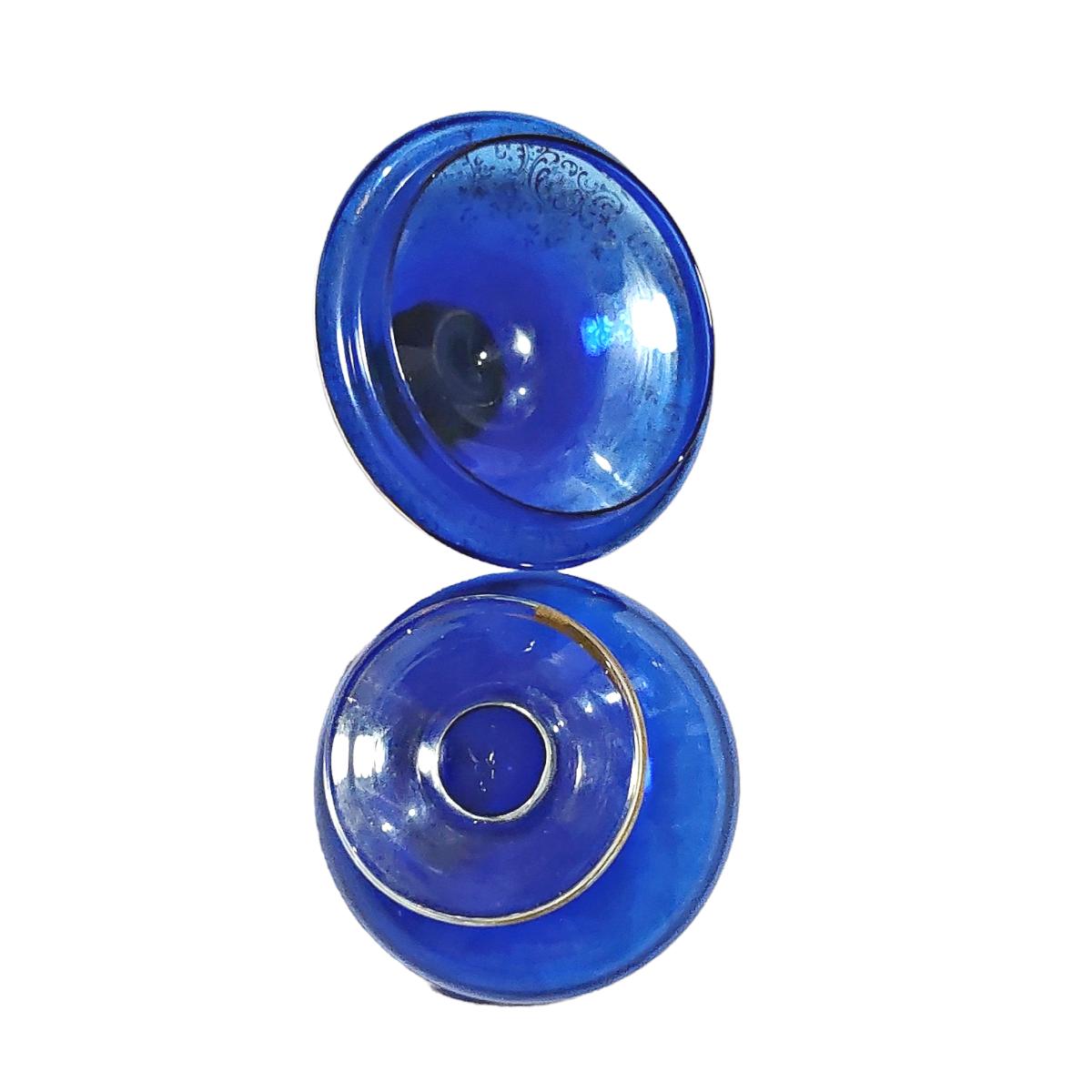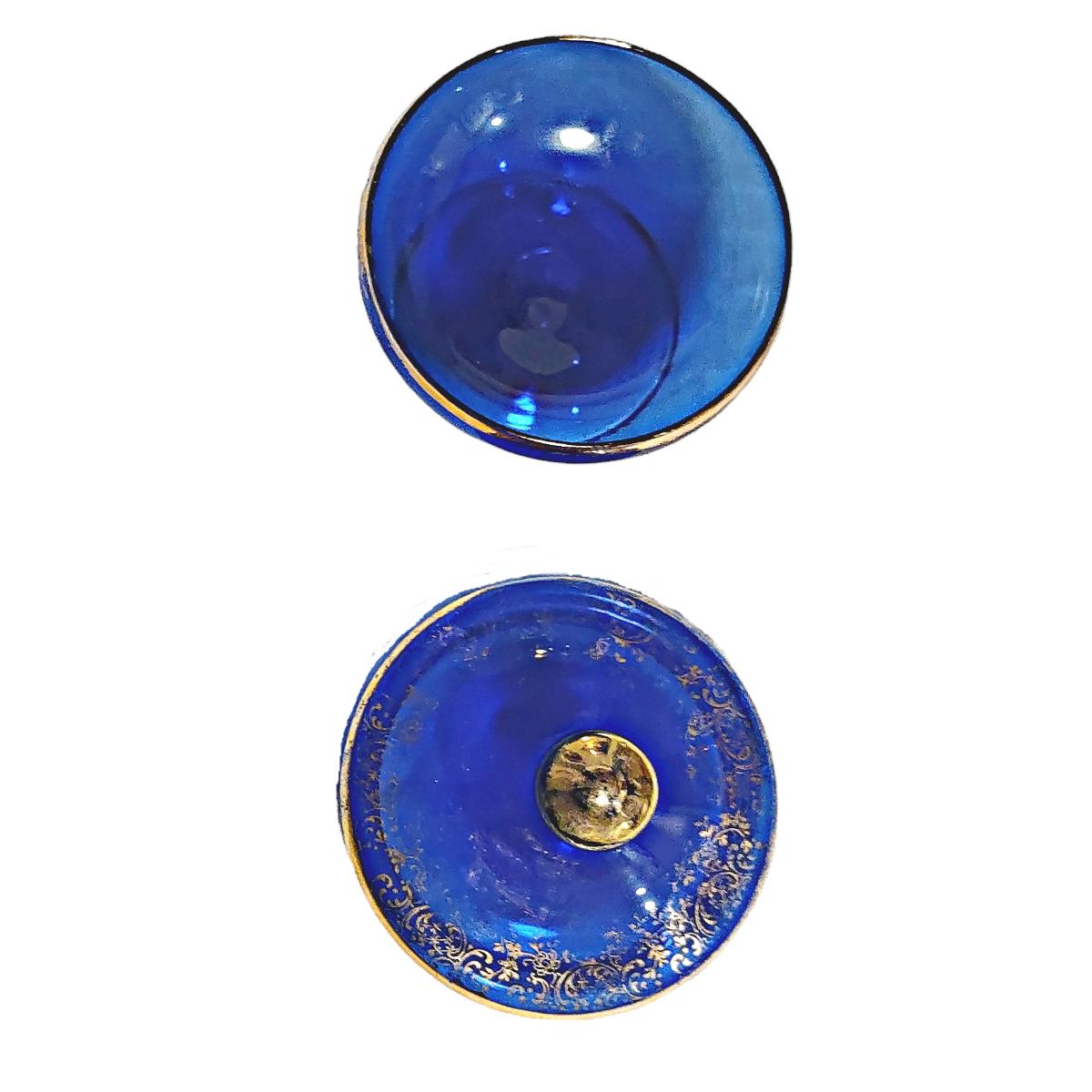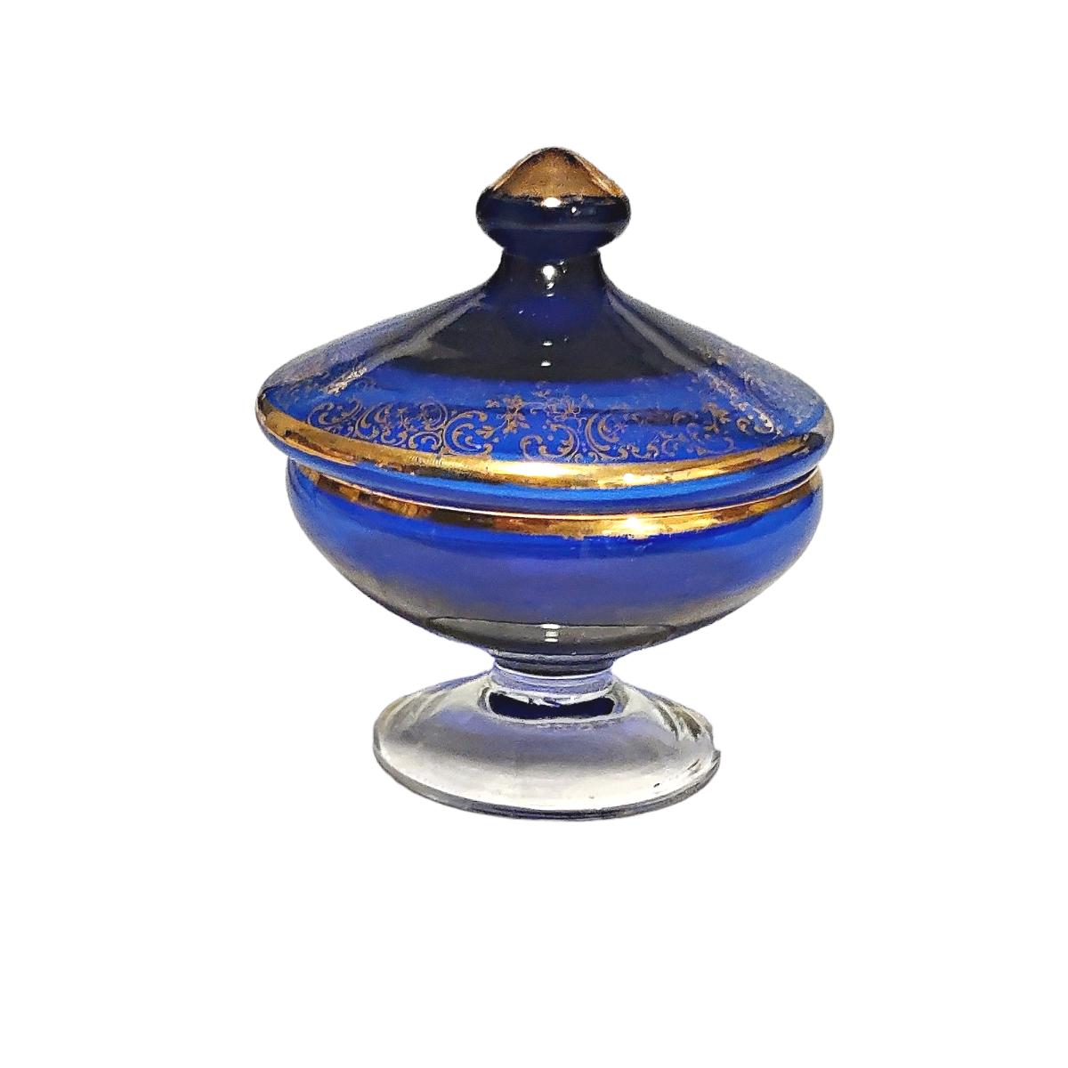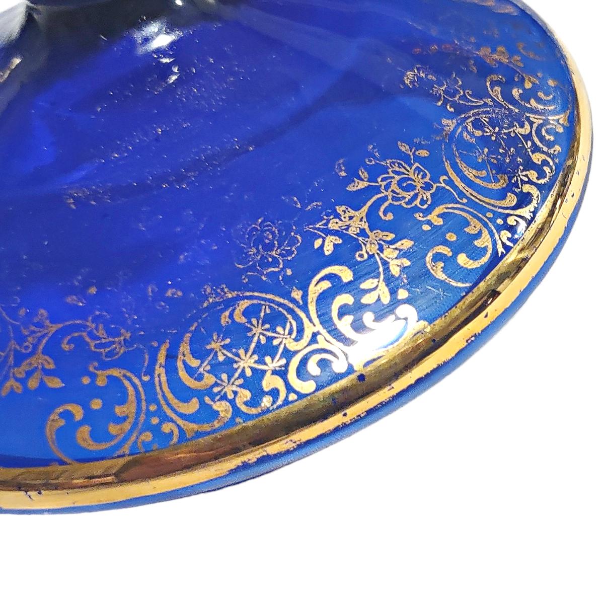 - Cobalt Blue Glass Bohemian Covered Compote Dish w/ Gold Gilt Edges