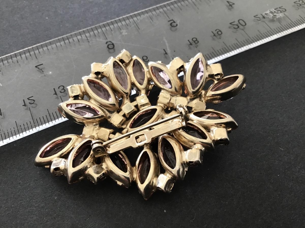 Vintage Czech Faceted Pink Handset Rhinestone Brooch